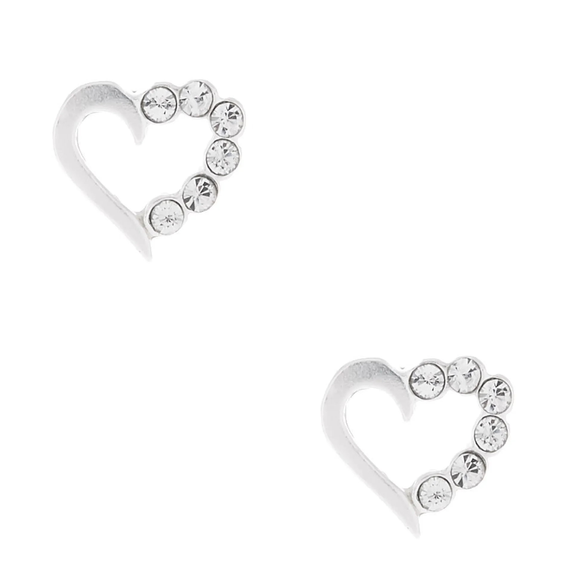 Show some love for a pretty heart shaped stud! This pair of sterling silver earrings features an open heart shape with faux crystal embellishment.