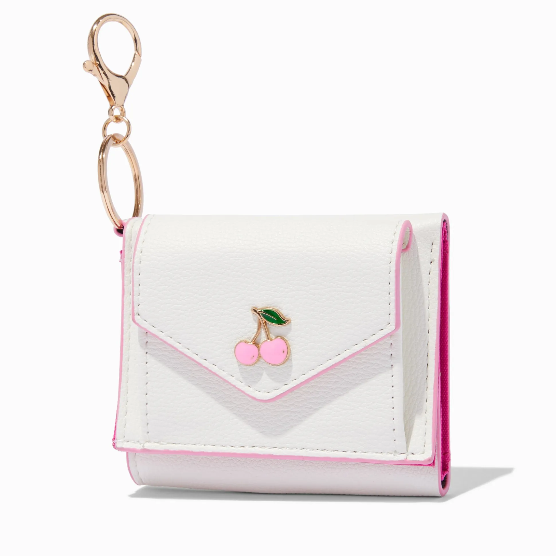 Small in size, but big on style! This wallet features a black cherry-themed flap. Unfold it to find slots for cards and cash, and there’s also a ring for your keys, and a clip to attach it to your purse or backpack.