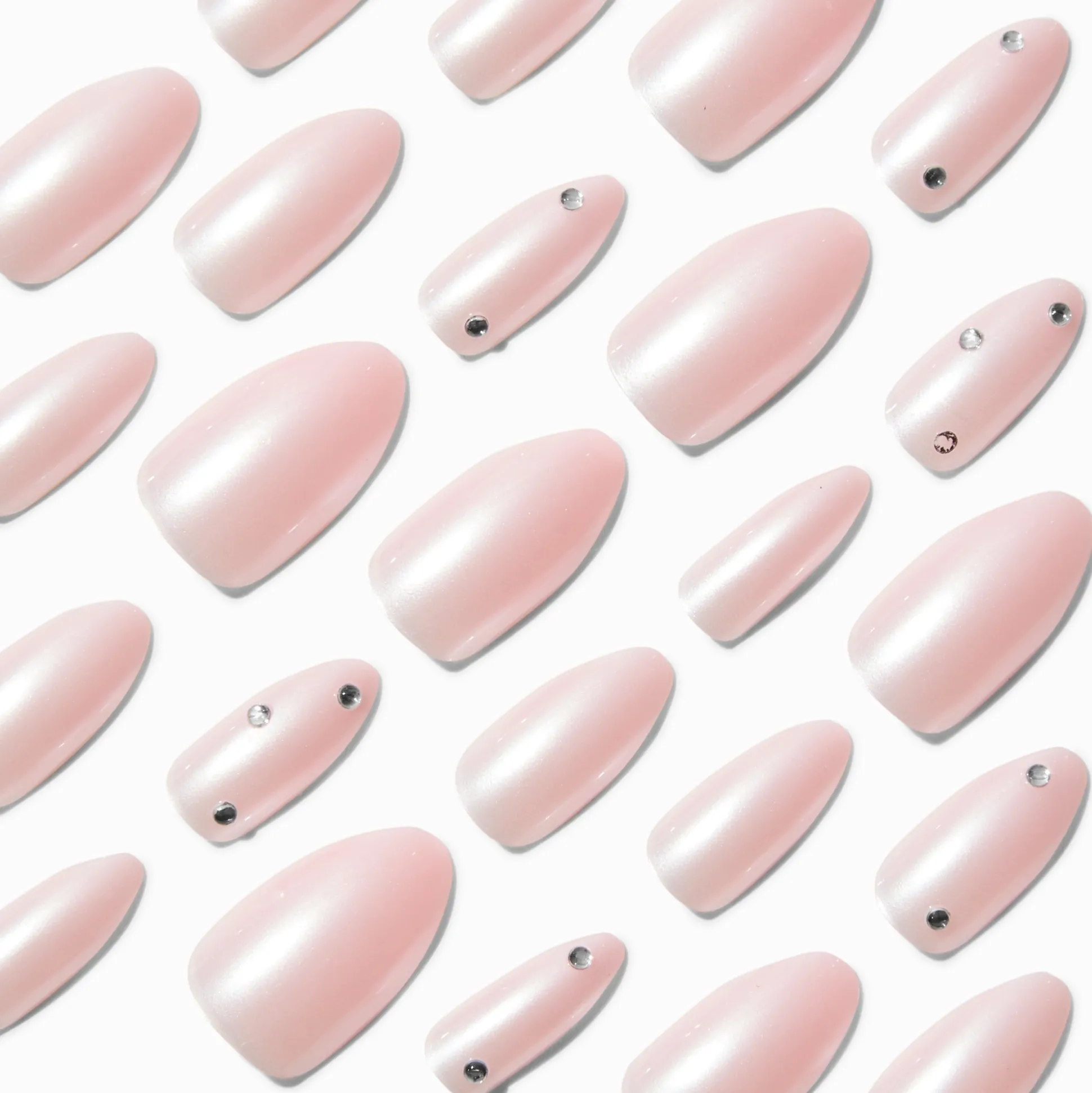 With an improved fit and up to a 7-day wear, these vegan faux nails are on-trend faves. They come in 12 different sizes, so finding the perfect shaped nail is a breeze. With a stiletto shape, these faux nails have a chrome finish.