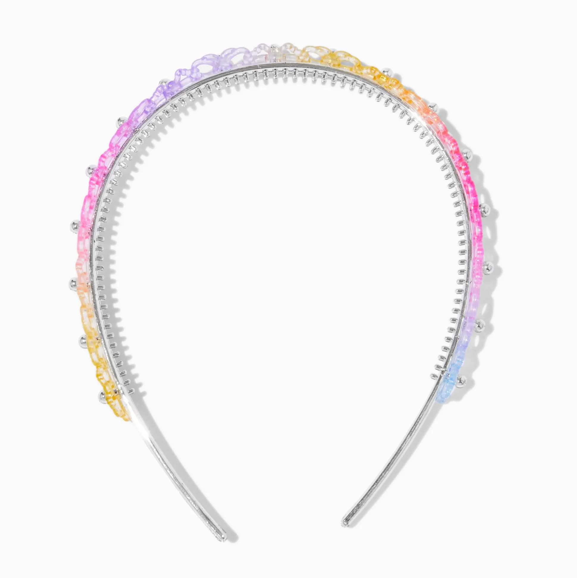 Decorate her hair with butterfly flair with this Claire’s Club headband. It has a rainbow-hued cutout butterfly design.