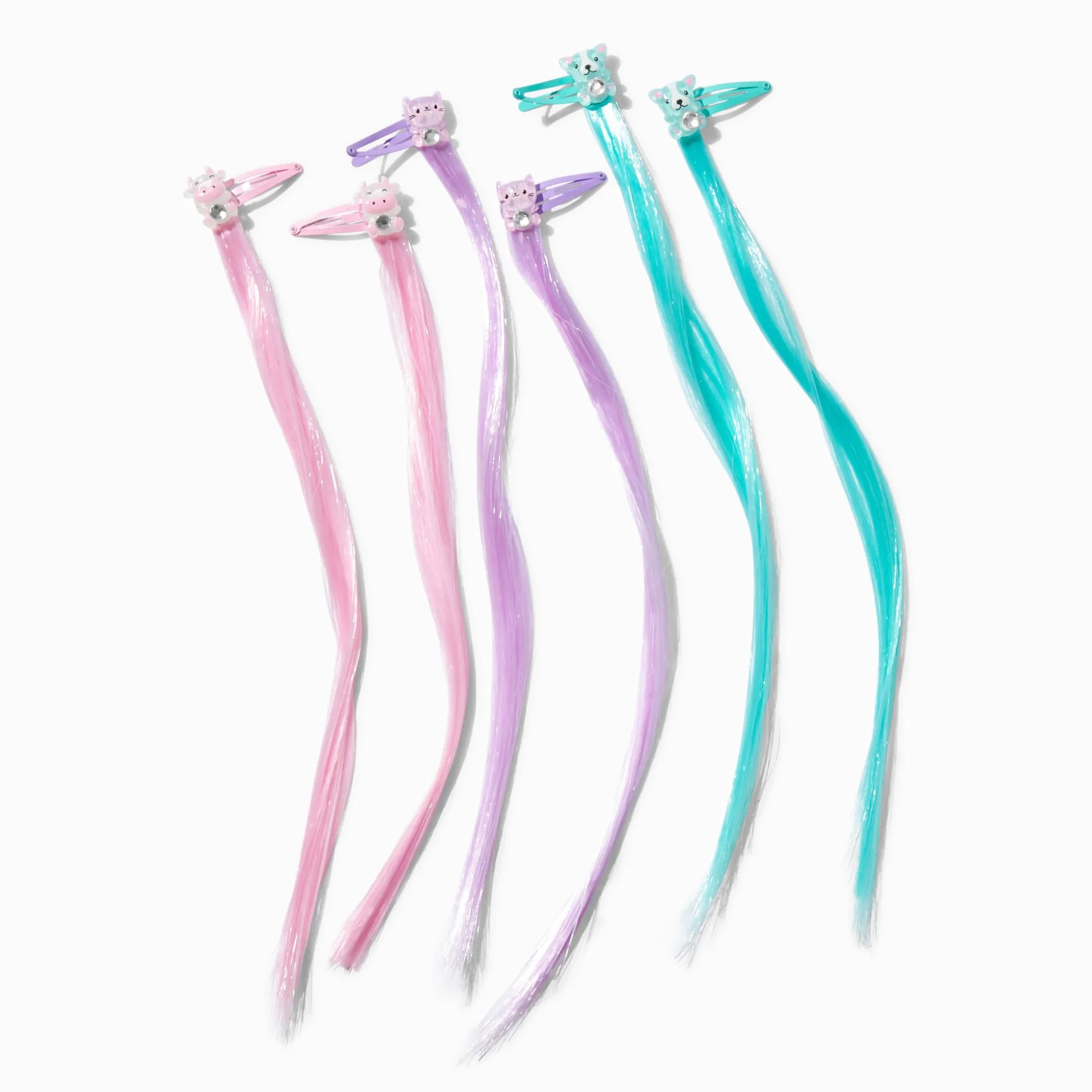 Add bright streaks of bright color to her hair with these clips! Each clip also has an adorable critter design with a faux gem on the clip at the top. Wear one, wear a few, or wear them all together!