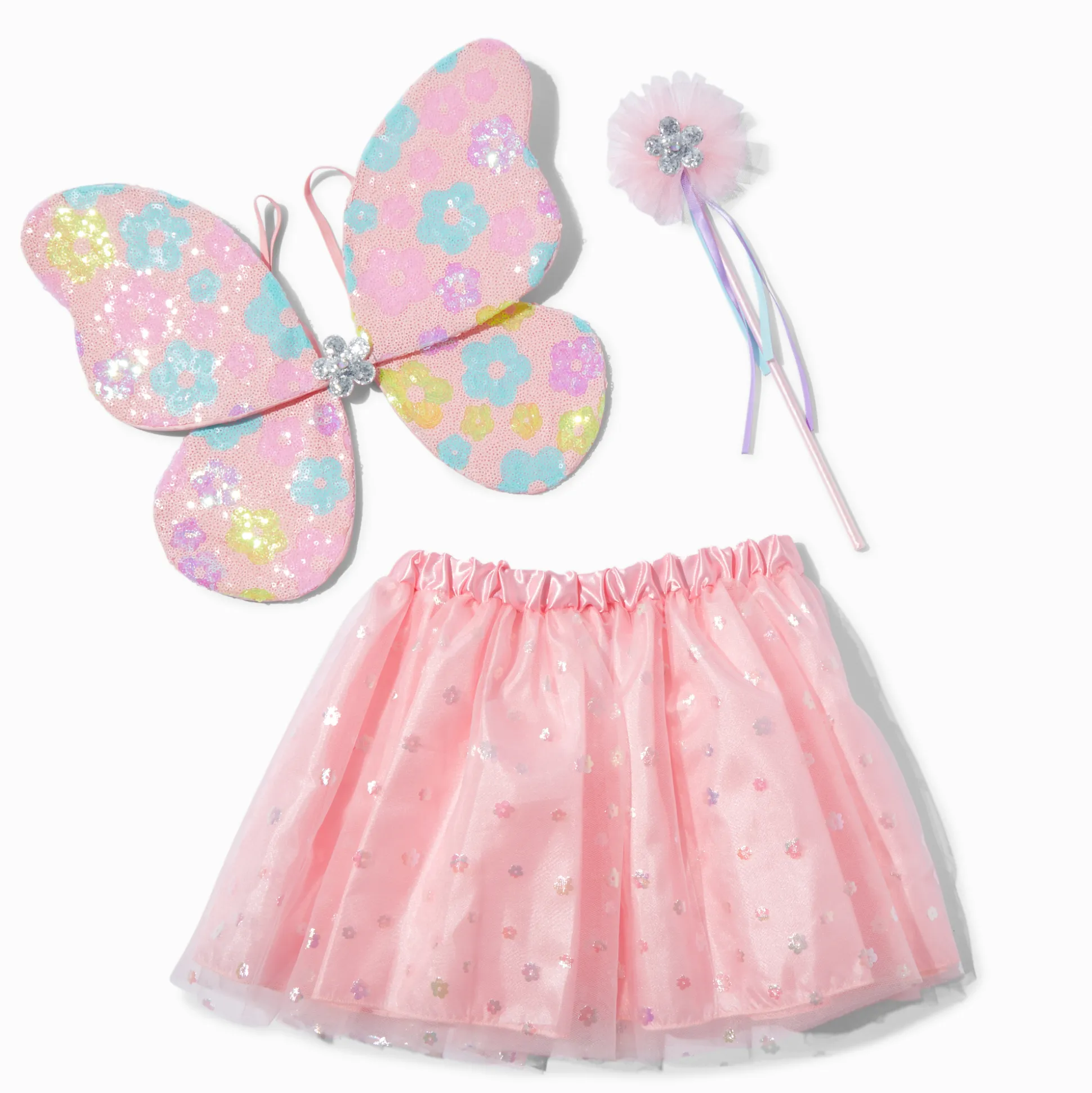 Fit for all types of little bodies, the pink tulle tutu has an elastic stretch waistband for ample room & comfort. Don the stretch wings -backpack style-, and have her take hold of the wand… and poof! Pretty, pretty princess she has become!
