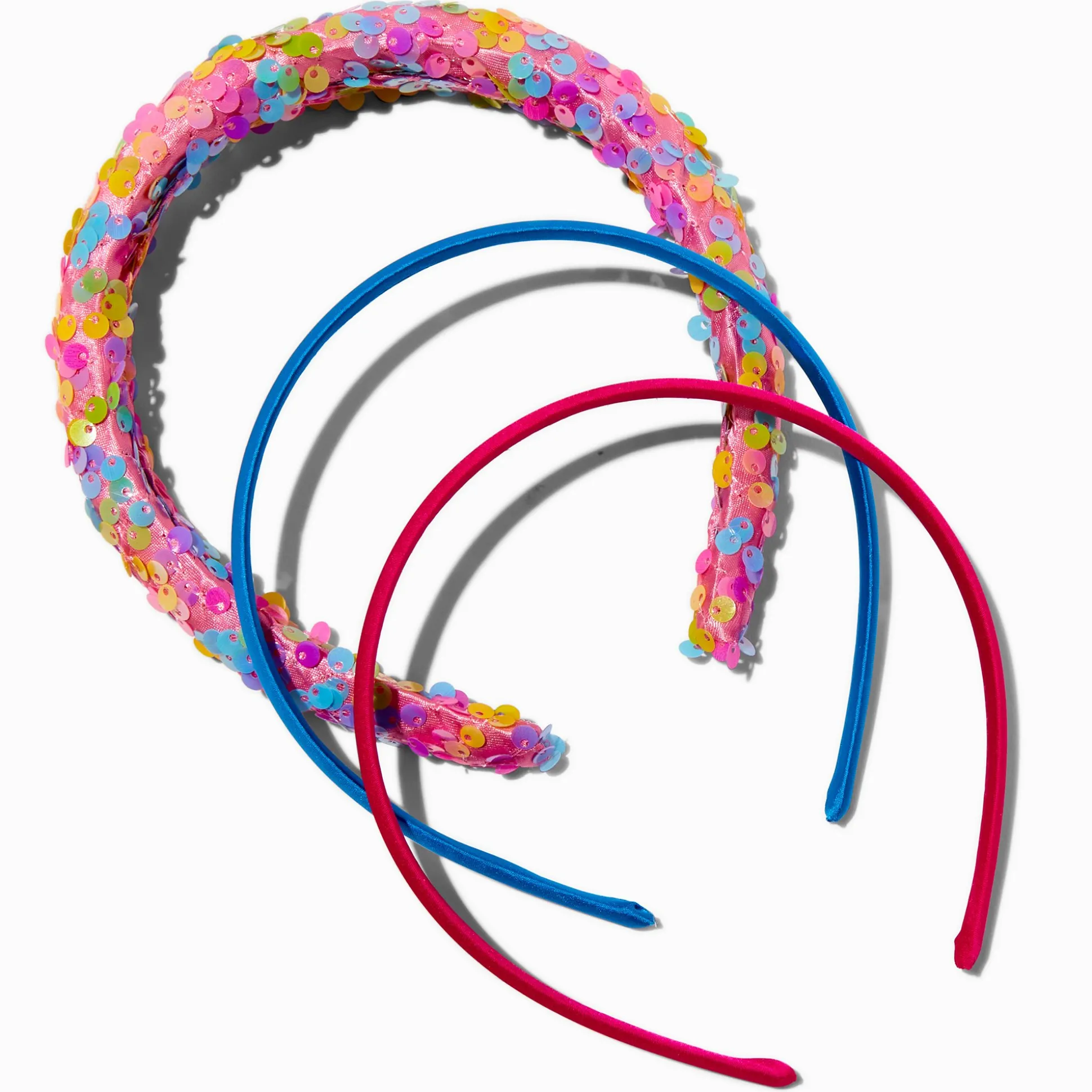 Have options for pulling her hair back with this three-pack headband set from Claire’s Club. Options include solid colors and a flat sequin-decorated headband.