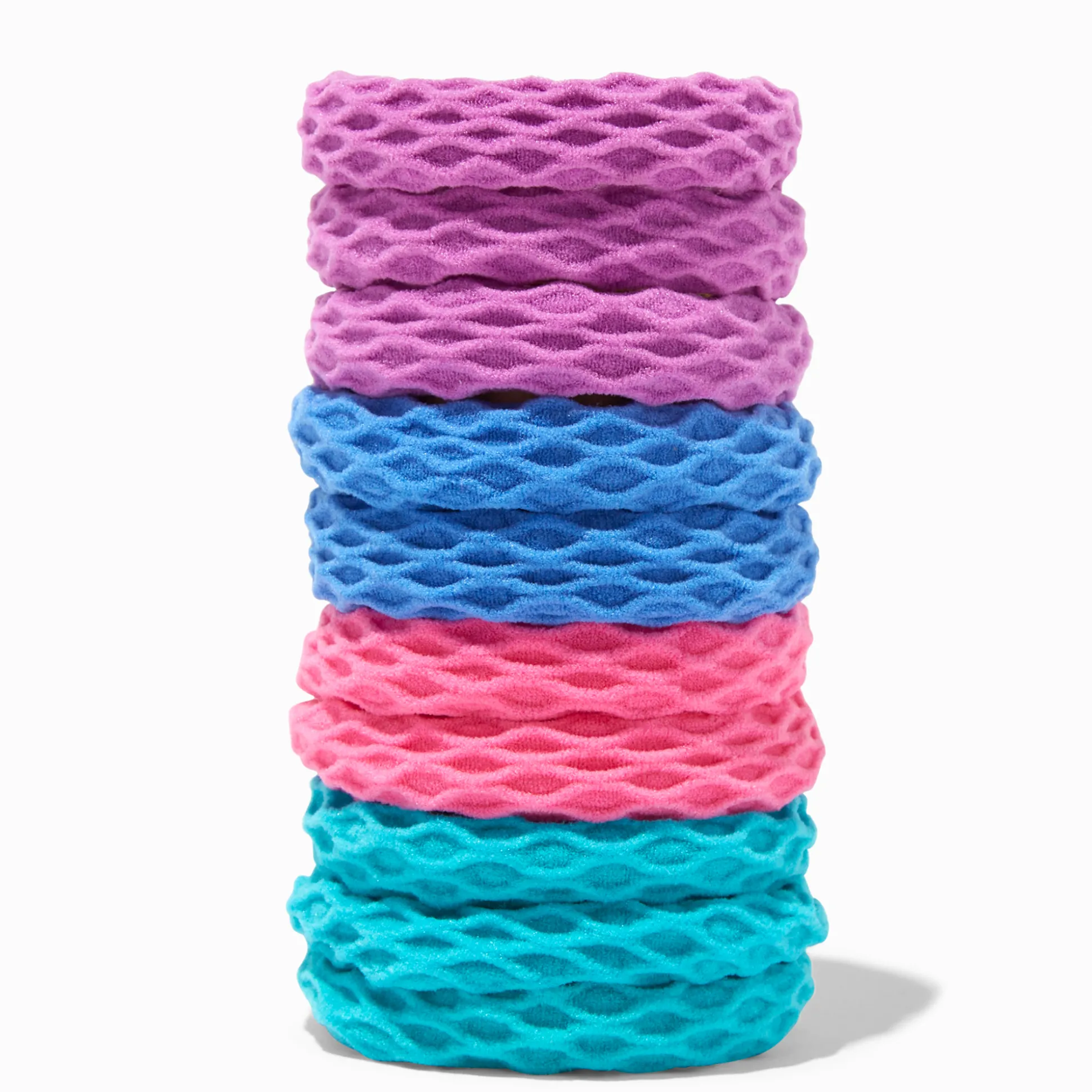 Let these jewel-tone hair ties hold her hair back! These hair ties feature a honeycomb design and includes 10 stretch hair ties in purple, blue & pink.