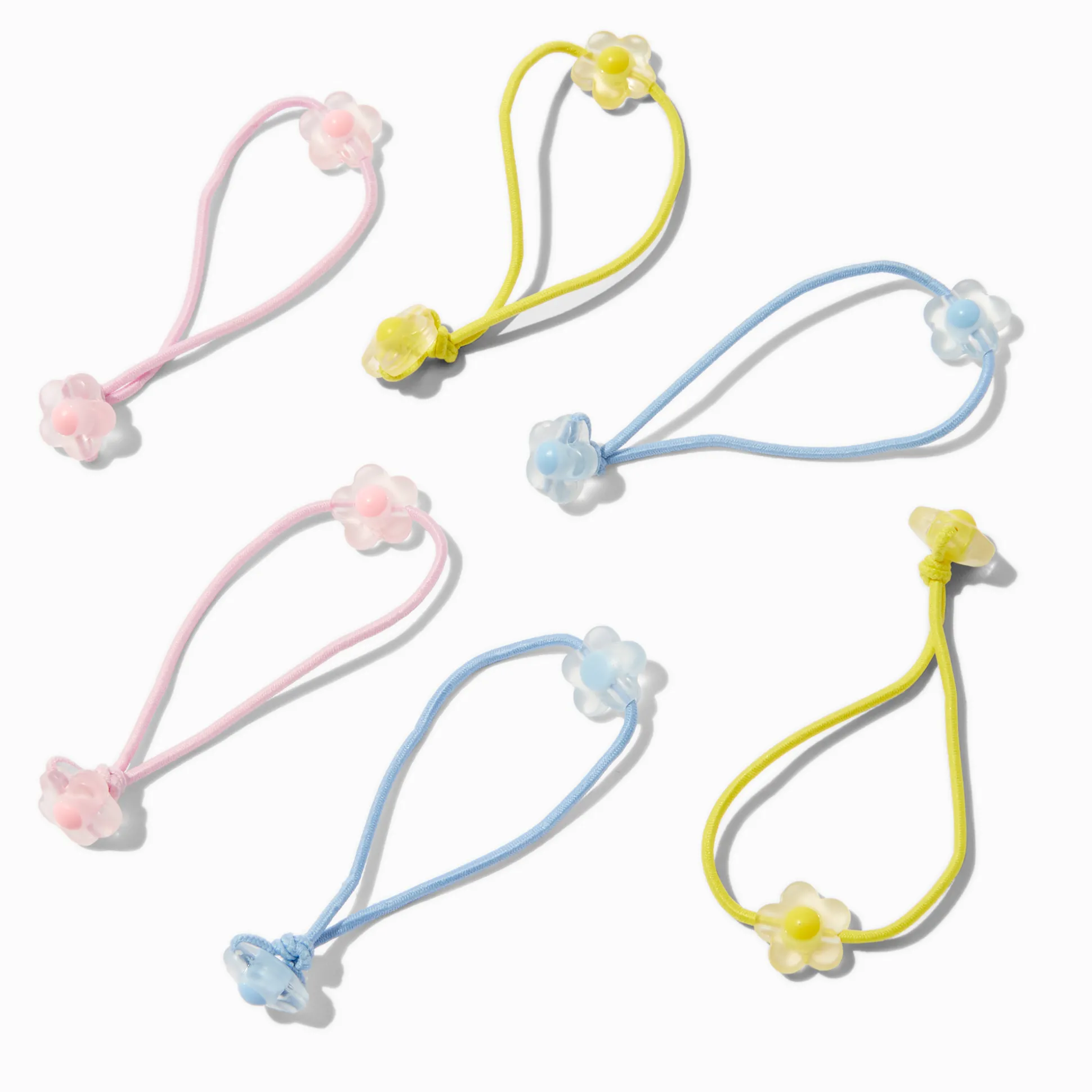 Tie up their hair with these stylish hair ties. This 6 pack consists of matte-colored flowers. Throw this fun set in backpacks, purses, or gym bags and always have the option to tie their hair up.