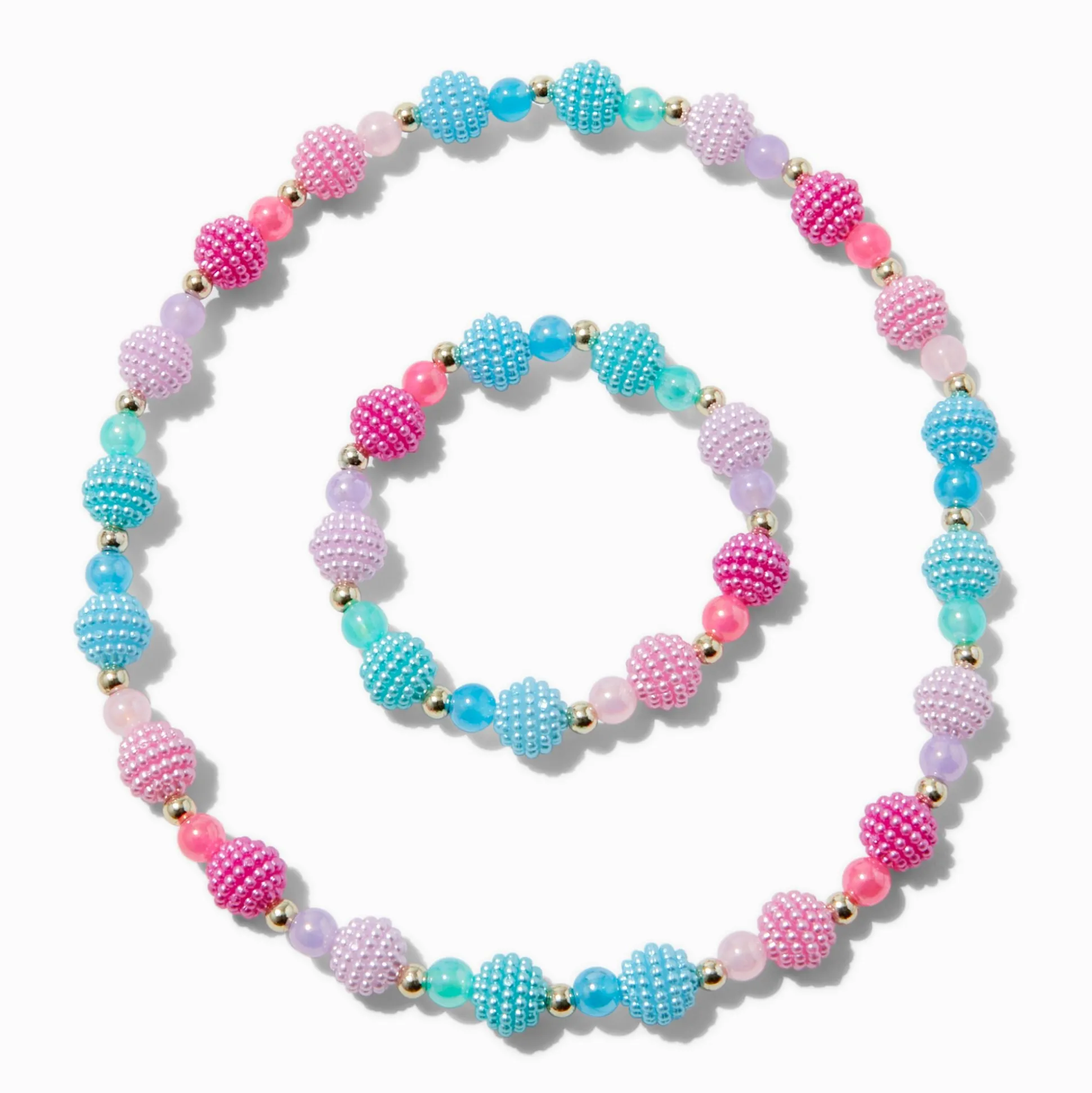 Perfect for when she’s feeling like a mermaid, this jewelry set will make a welcome addition to her collection. The set includes a beaded stretch necklace and bracelet, each featuring textured beads in mermaid-inspired shades.