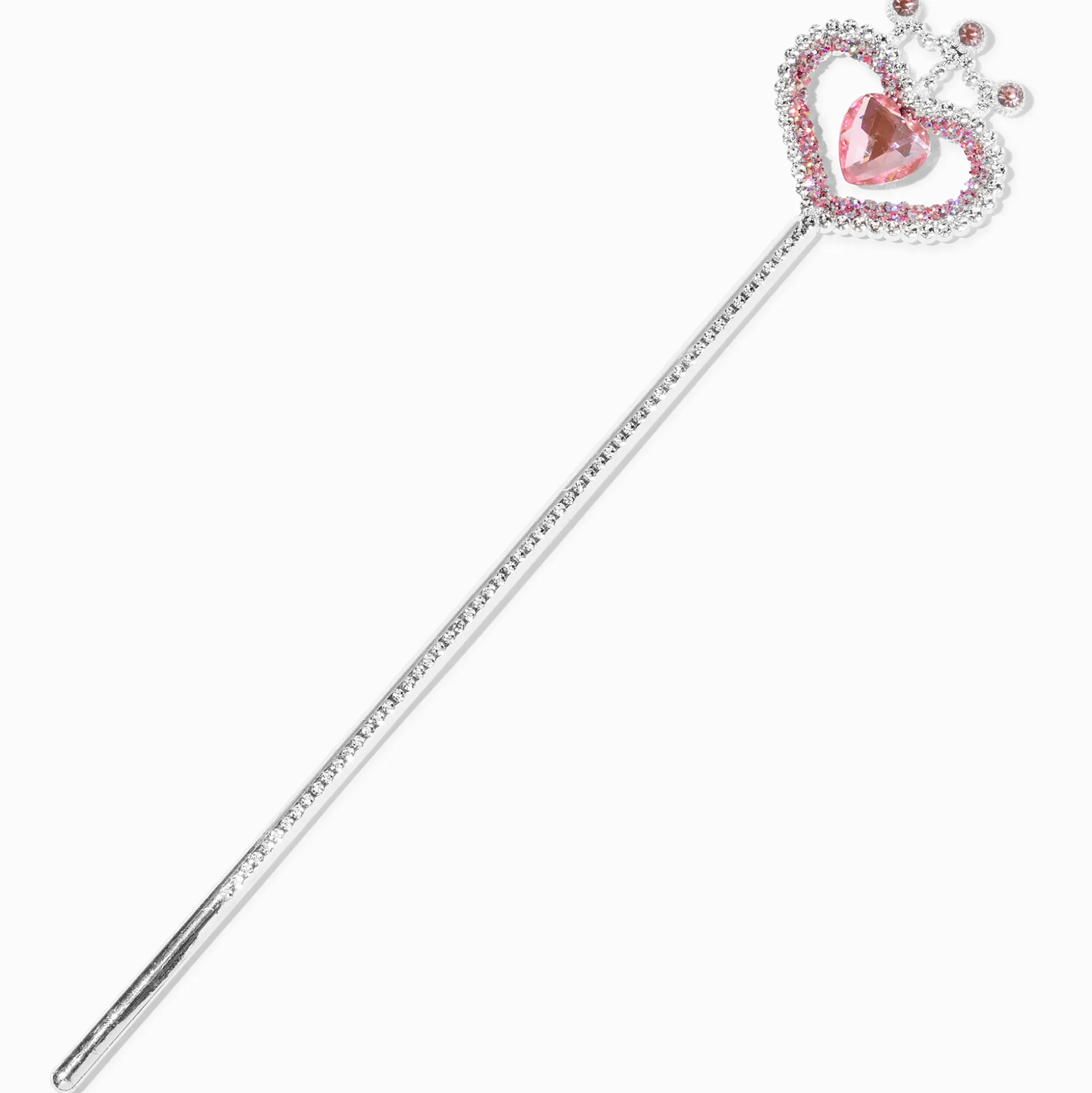 She can feel like the pretty princess she is with this fun wand! This silver-tone wand has pink gems, crown charms, and faux gemstone accents.