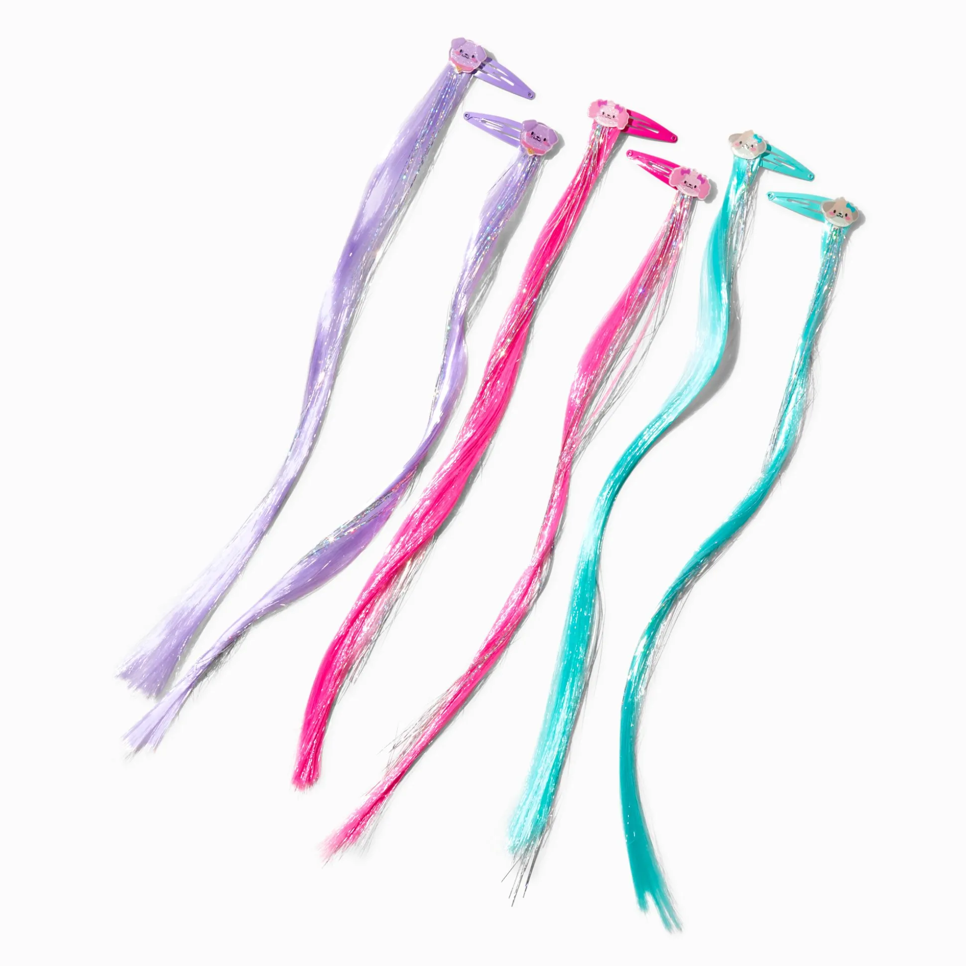 Add bright streaks of bright color to her hair with these clips! Each clip also has an adorable puppy design on the clip at the top. Wear one, wear a few, or wear them all together!