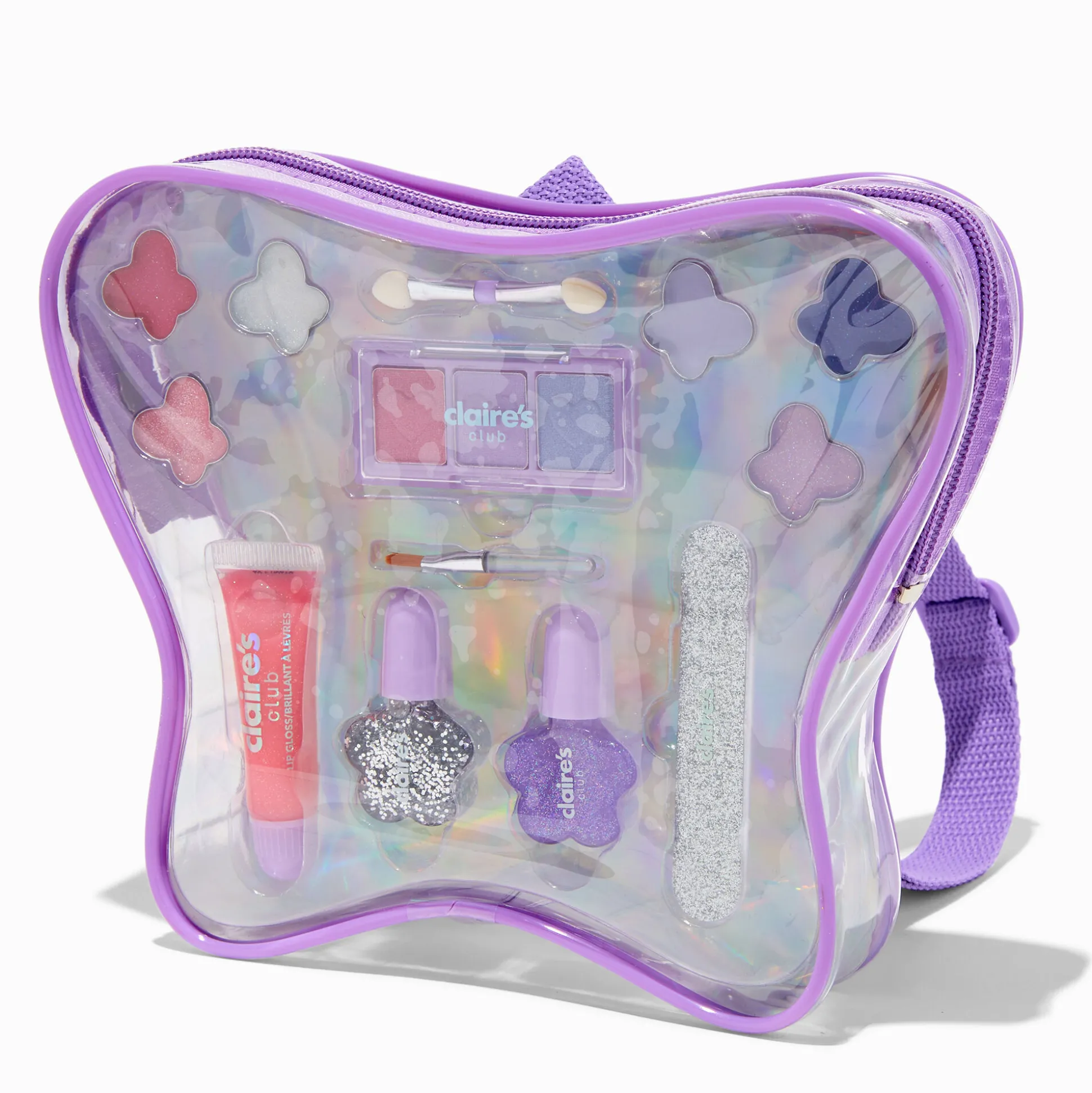 This makeup set comes packaged in a cute butterfly shaped backpack for extra cute style and easy carrying. It includes various lip products, nail polish & applicators.