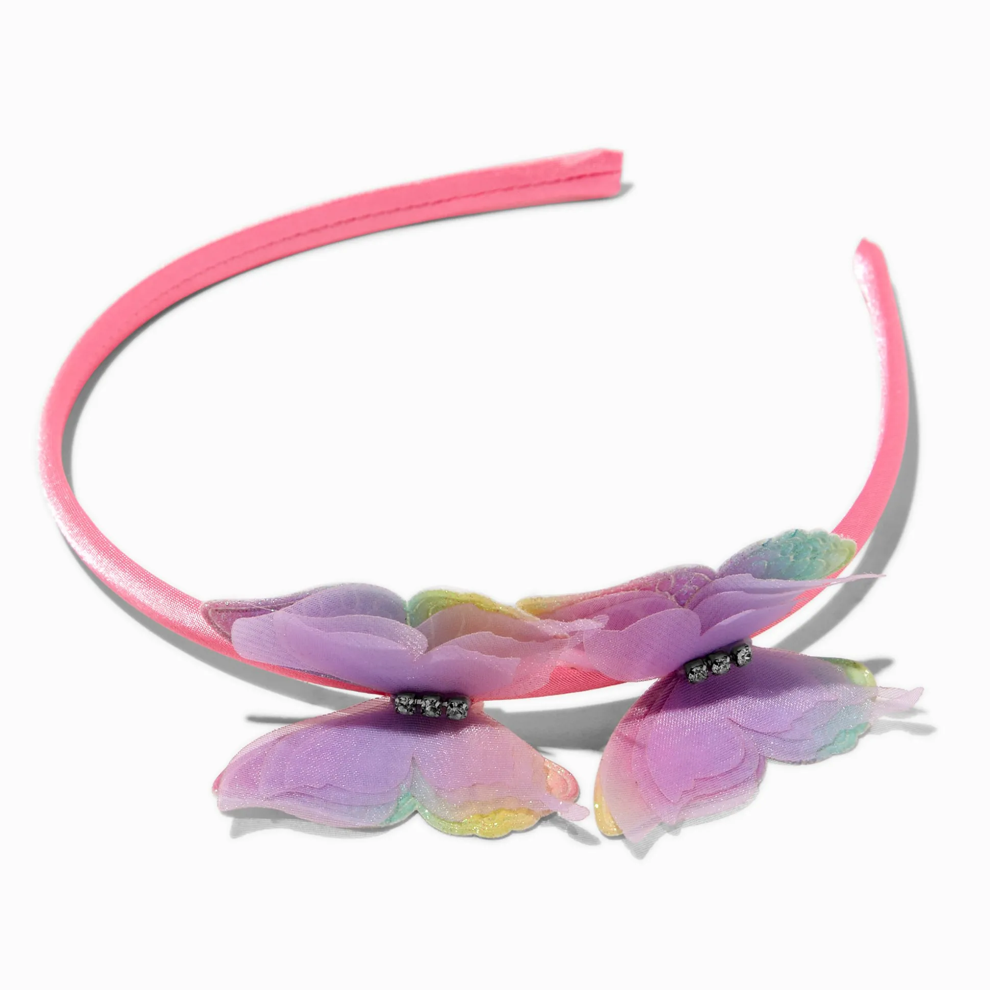 Decorate her hair with butterflies with this Claire’s Club headband. The purple headband has a butterfly pair that is accented with faux crystals.