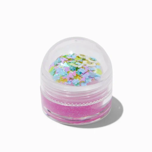 She will have fun putting on her lip gloss with this adorable lip gloss pot! The gloss comes in clear packaging, and topped off with a shaker-style dome filled with fun confetti.