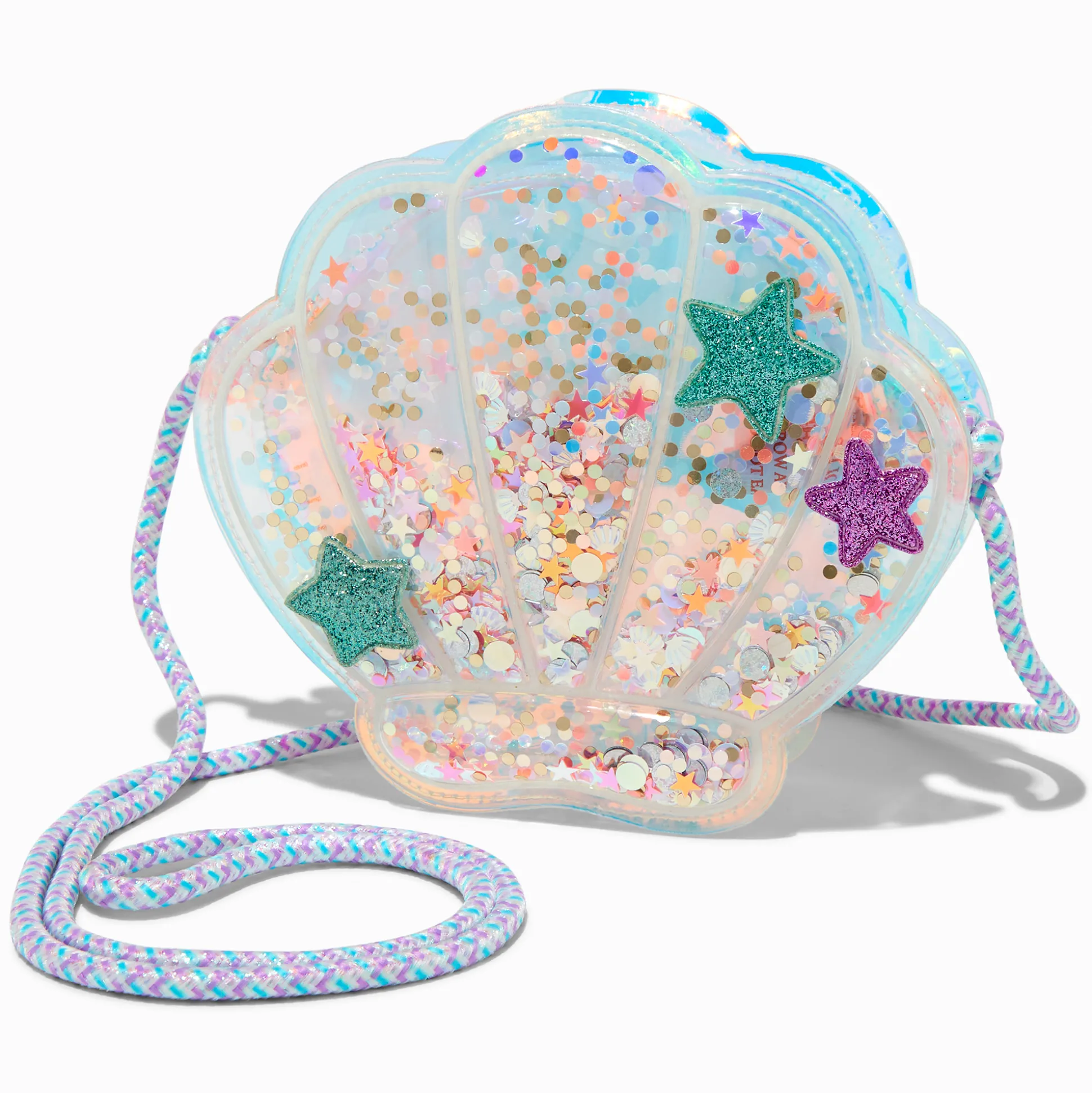 Your little one will be on cloud nine with this adorable crossbody bag! The iridescent seashell bag features a shaker design that includes star glitter. The spacious zippered compartment will hold all her beach belongings with on-the-go convenience.