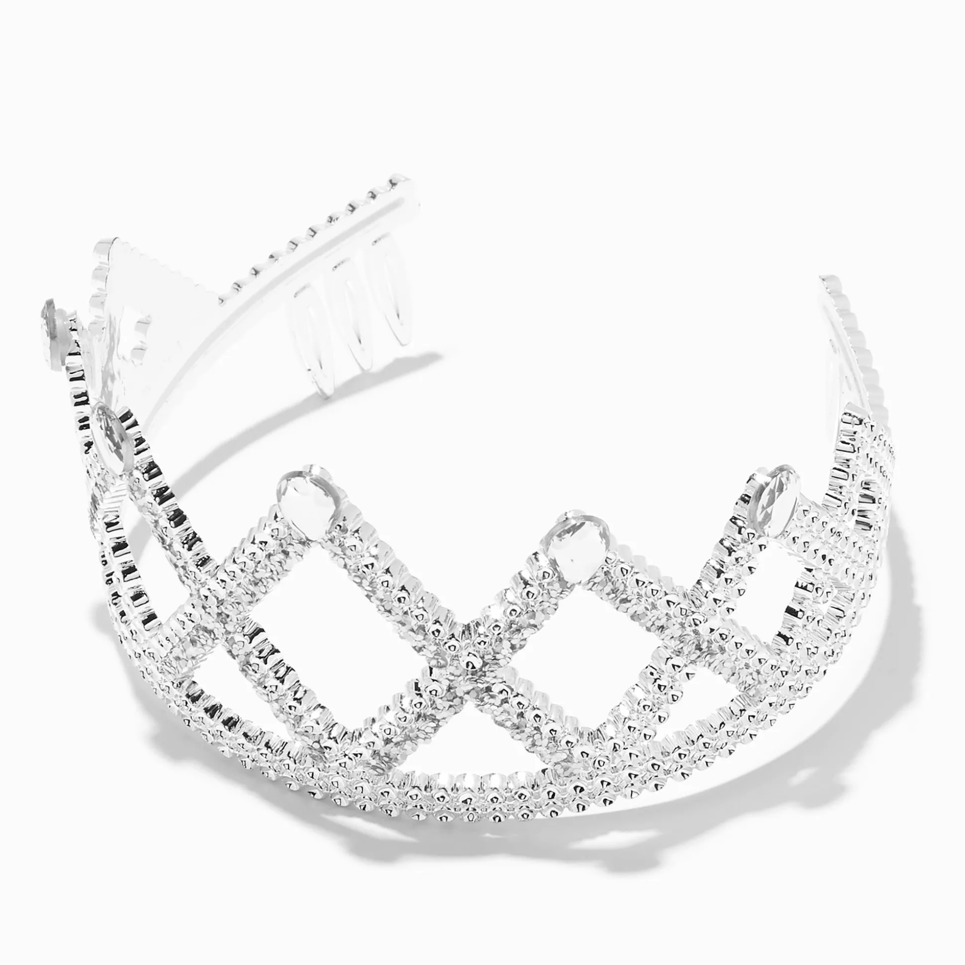 She will sparkle like a princess when she wears this crown. Diamond shapes are covered in crystals and topped with upside down teardrop shaped gems. Two combs ensure secure hold.