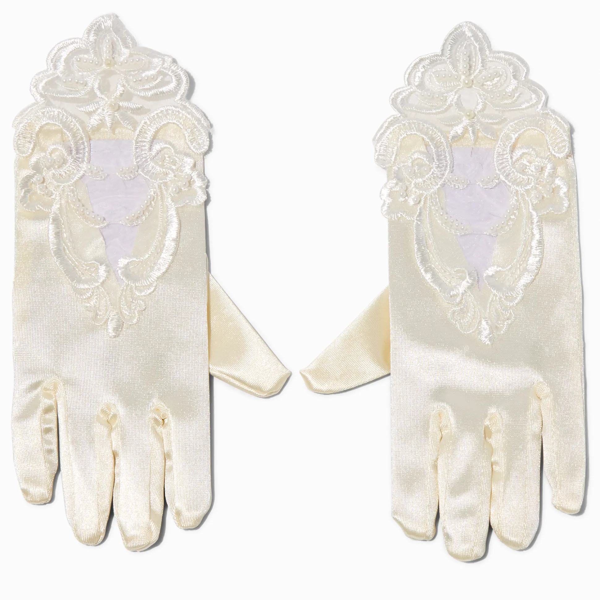 Give off elegant vibes with these special occasion gloves. These delicate gloves are in an intricate and gorgeous embroidered pattern. Pair these gloves with an all white Flower Girl look, or add with a formal dress for some added interest on the hands. Paired differently, these loves cover a multitude of styles, for the girl who’s into it all.