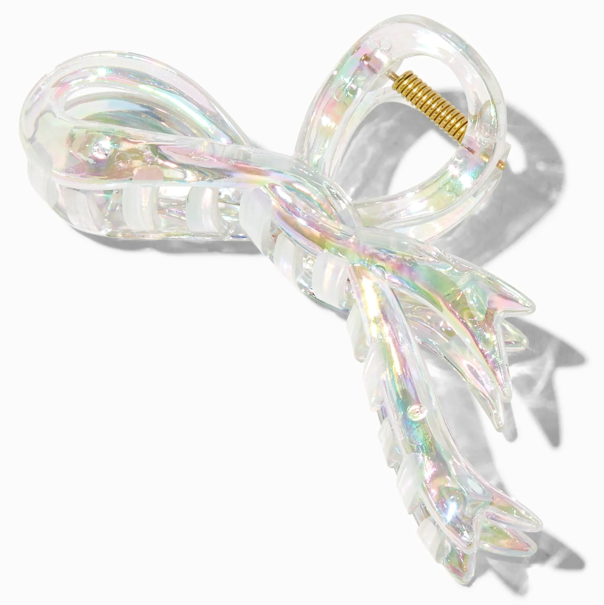 Finish your look with a bow with this easy hair claw. The plastic, clear design has a bow shape that keeps all of your hair in place.