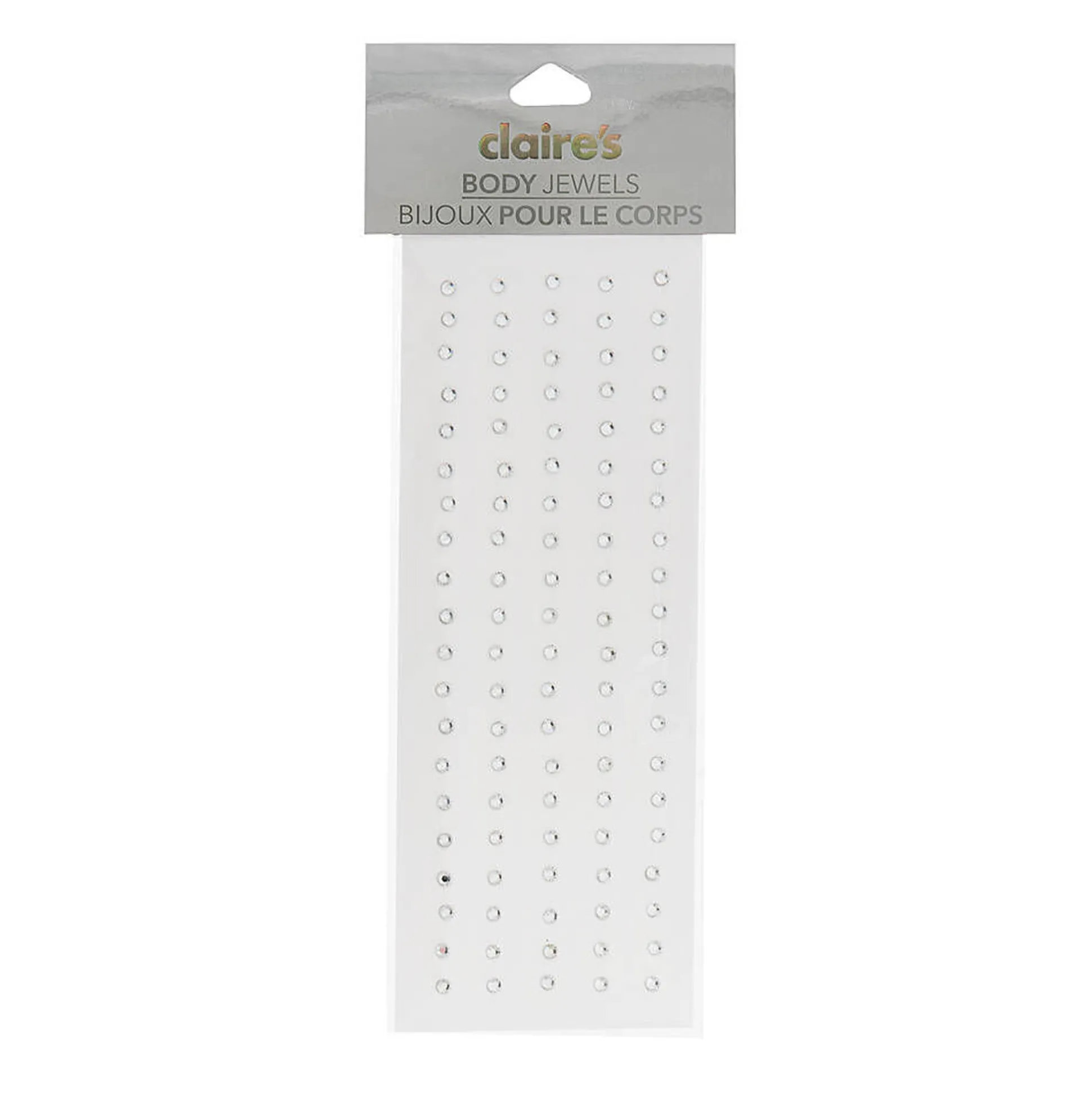 Create designs and add sparkle all over your body with these clear crystal body jewels. Includes 100 self-stick jewels.