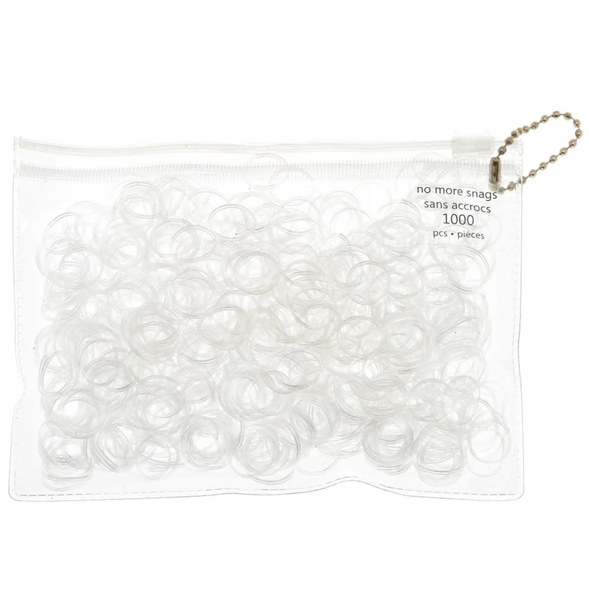 Tie your hairstyle up with these Clear No More Snag Mini Hair Ties. Perfect for securing braids or a ponytail, these clear hair ties come with 1,000 per pack.