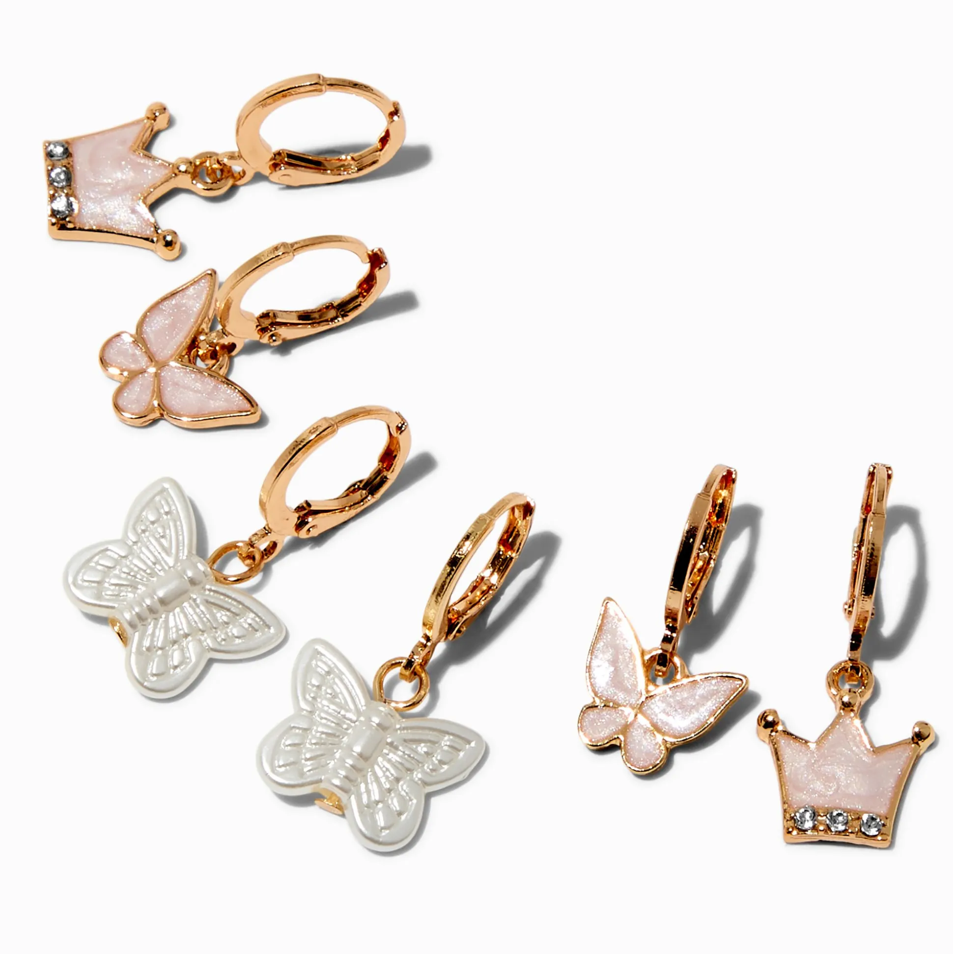 Be the first to review “Crown & Butterfly Gold-tone Hoop Earrings – 3 Pack” Cancel reply