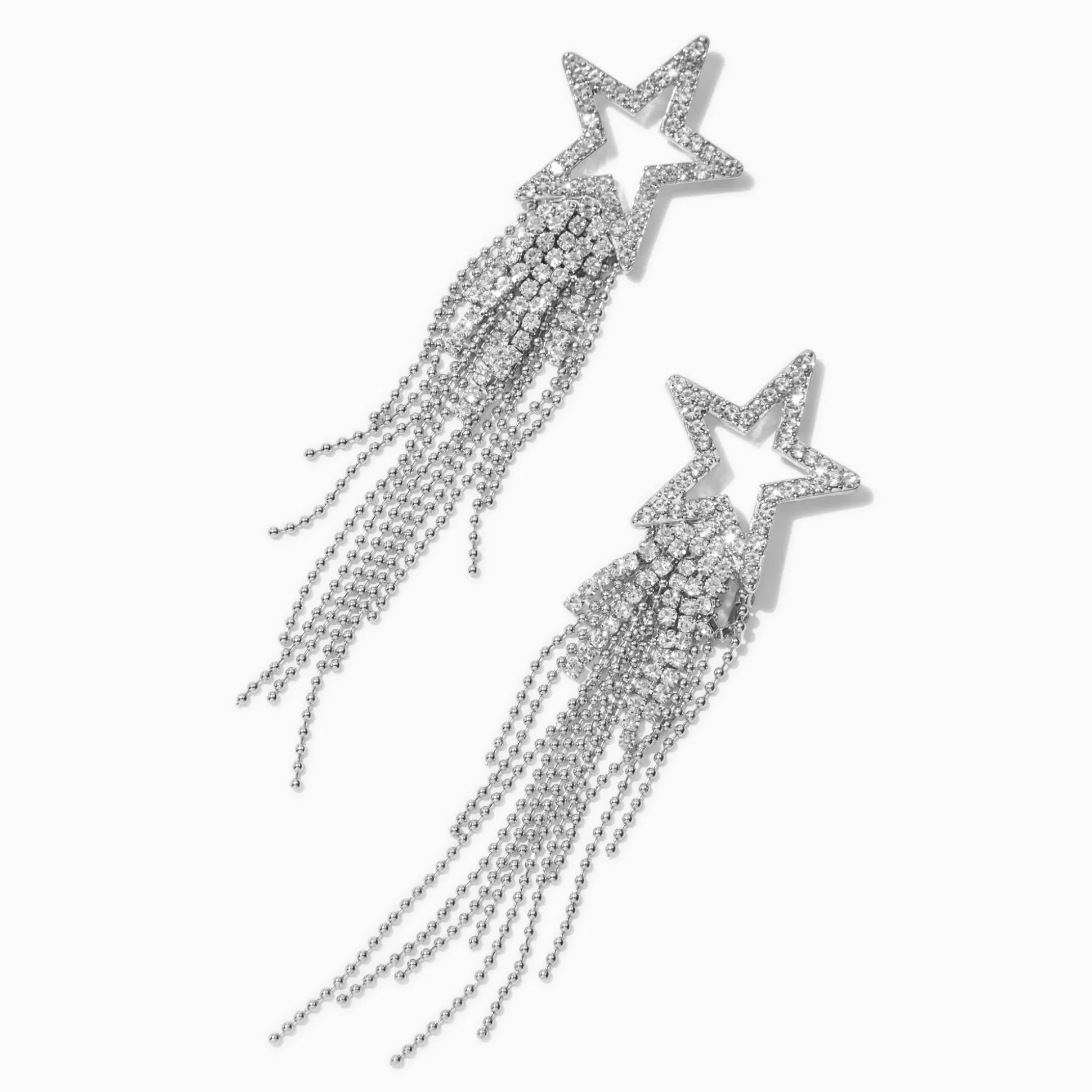 Have the most star power in these drop earrings. The cuties have cubic zirconia star designs and a ton of silver-tone chain fringe!