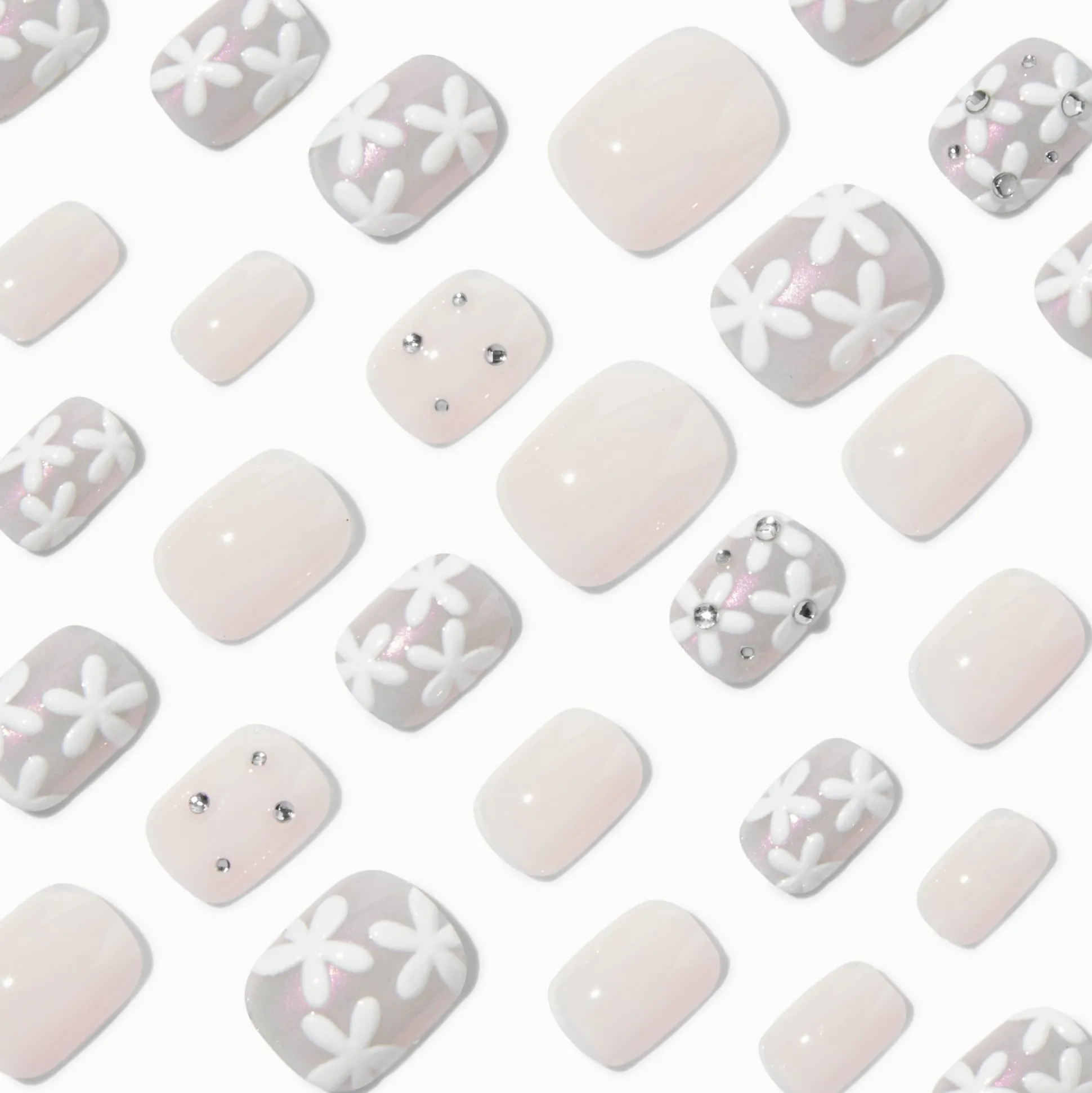 With an improved fit and up to a 7-day wear, these vegan faux nails are on-trend faves. They come in 12 different sizes, so finding the perfect shaped nail is a breeze. With a squoval shape, these faux nails have a blingin’ daisy finish.