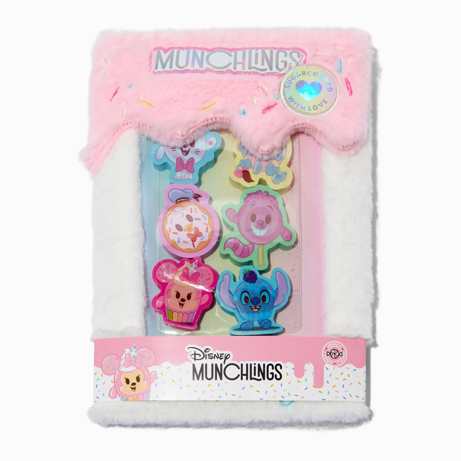 Collect your favorite characters with this Disney Munchlings notebook. This soft-to-the-touch notebook has lined pages and included erasers.