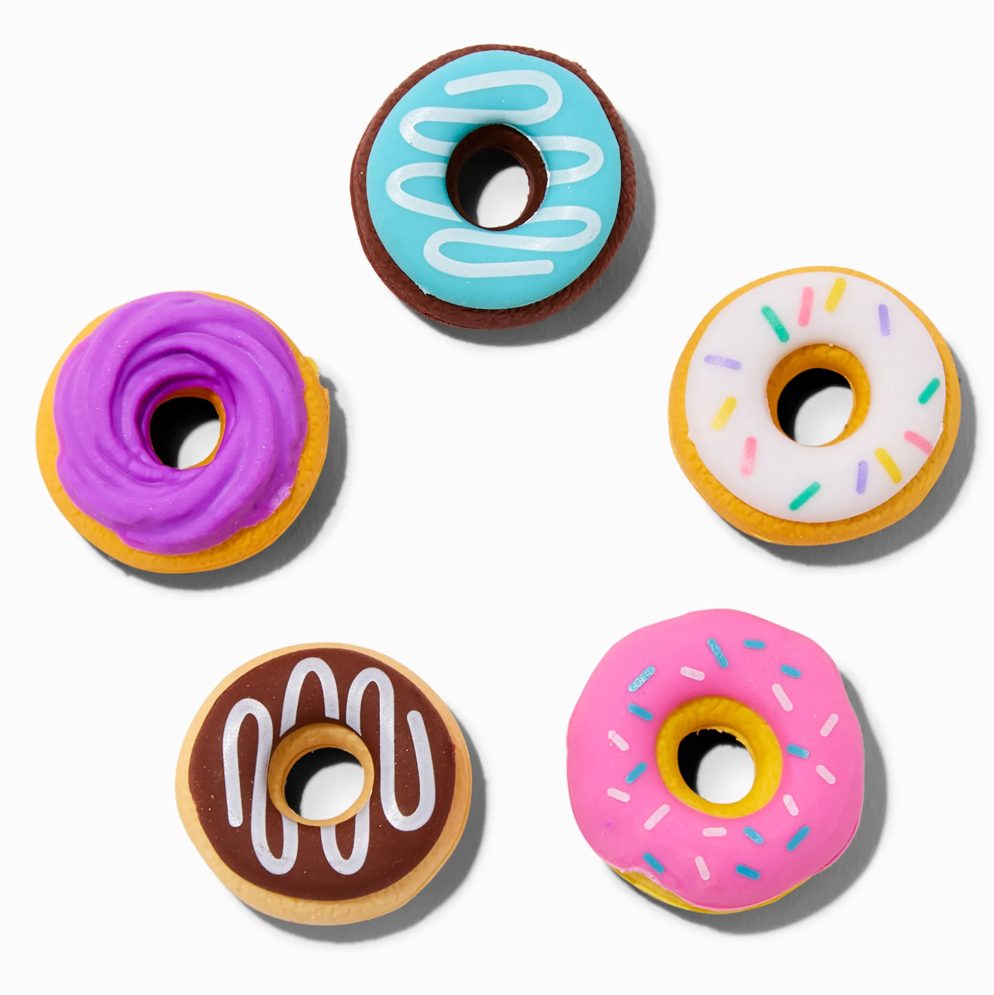 If you’re a lover of all things donut, then you need this set of adorable erasers to take with you to school! Included are 5 erasers that are various color & flavors.