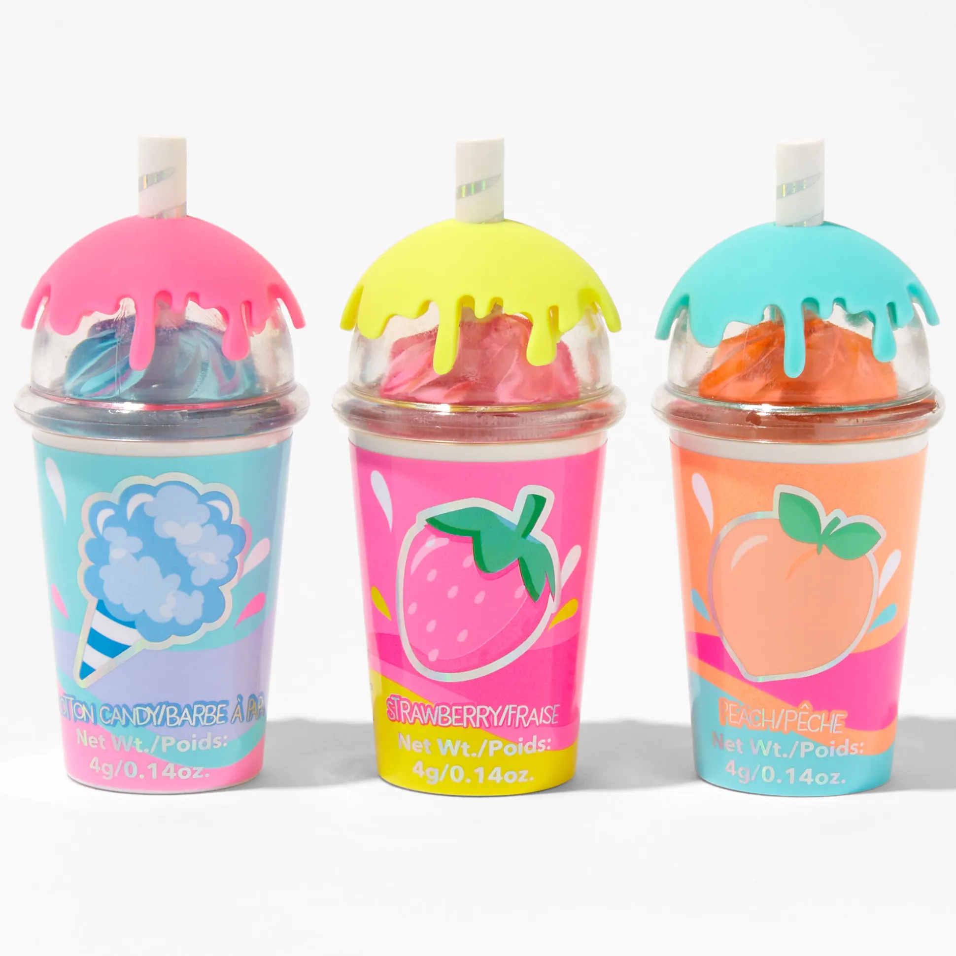 Have fun putting on your lip balm with this cute set! The set includes 3 different flavors of lip gloss in frappuccino-shaped packaging.