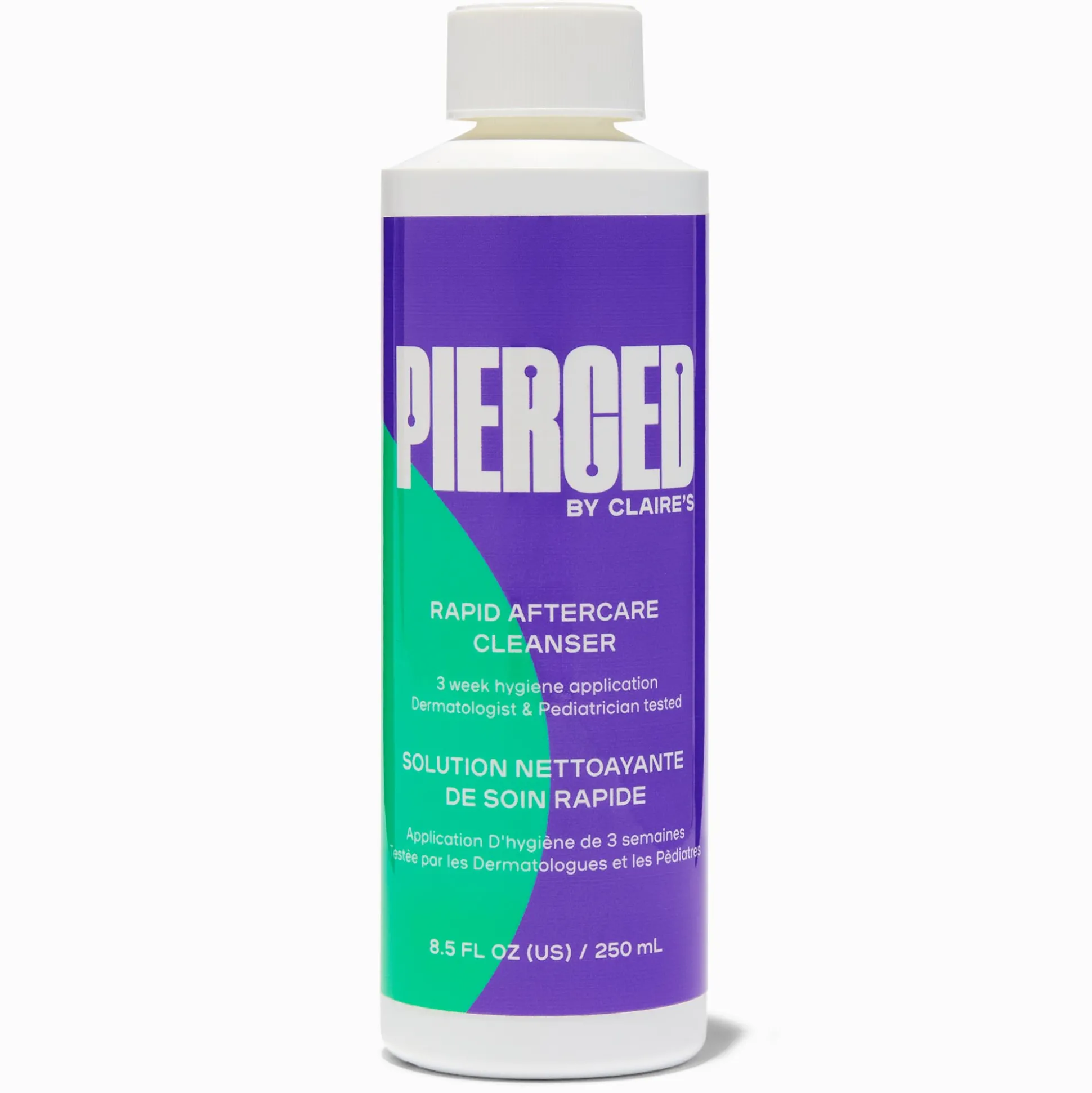 FAST HEALING, this Rapid After Care Cleanser is designed for quick post-piercing care & heal time. With the use of Claire’s Rapid After Care Cleanser, you can change your lobe piercing after only 3 weeks, nose piercing after 6 weeks, or cartilage piercing after 8 weeks!