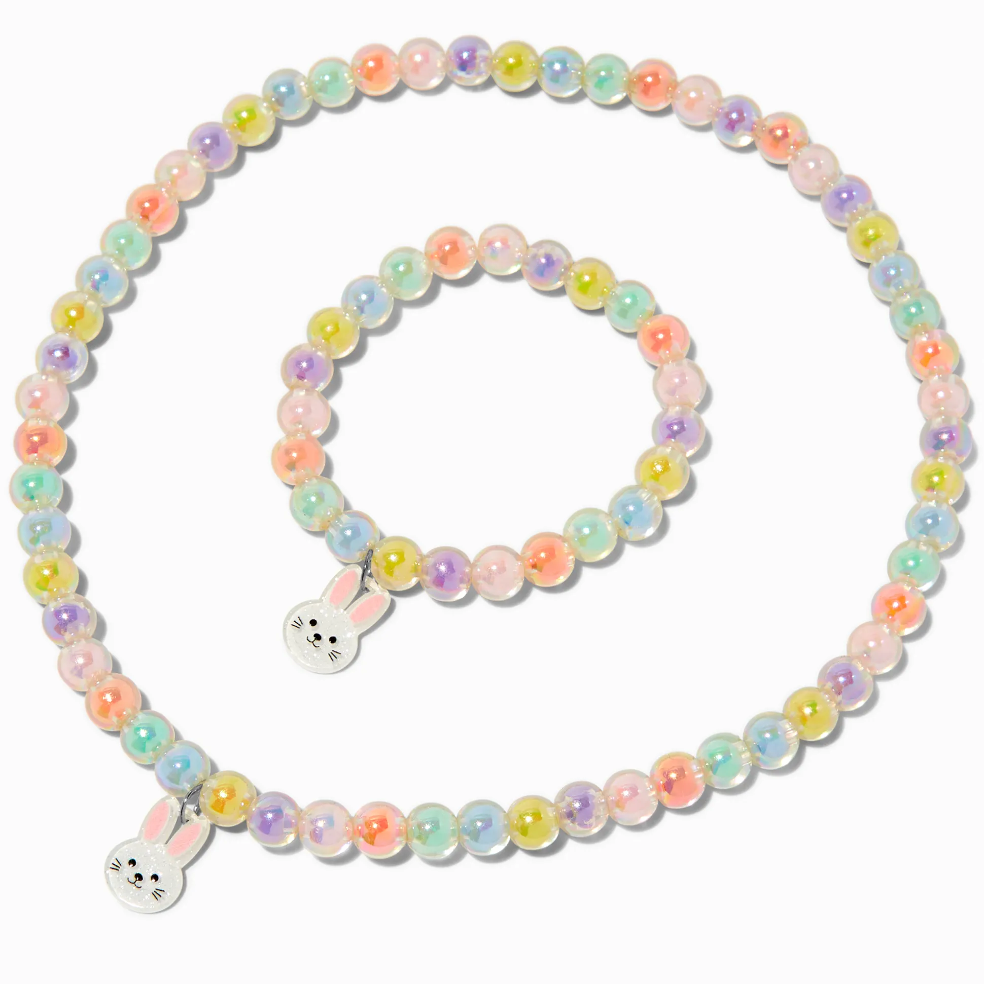 With this necklace and bracelet set on, you’re ready to celebrate Easter. Whether you’re going to a party or egg hunt, this set is your perfect finishing touch. It includes a beaded necklace and a beaded bracelet. Both finished with adorable bunny pendants.