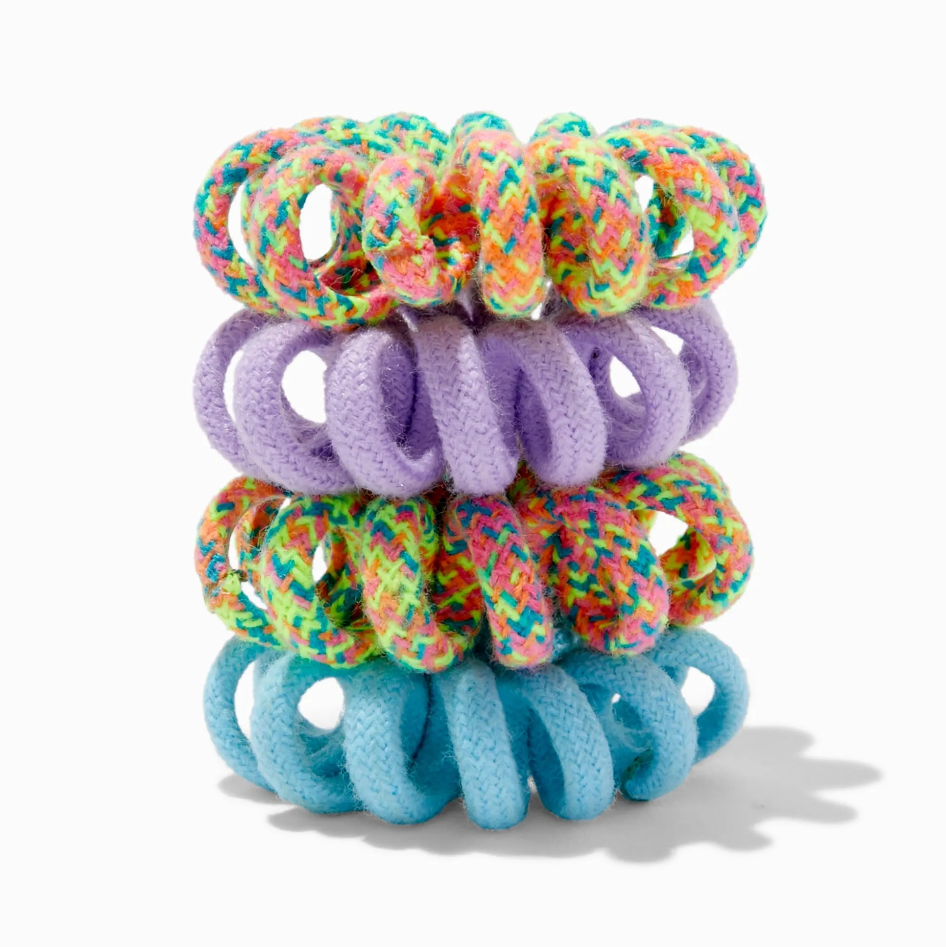 With fabric covering, these spiral hair ties provide even less ouch when removing from your hair. The set comes with four, so you can wear some in your hair, and some on your wrists as bracelets.