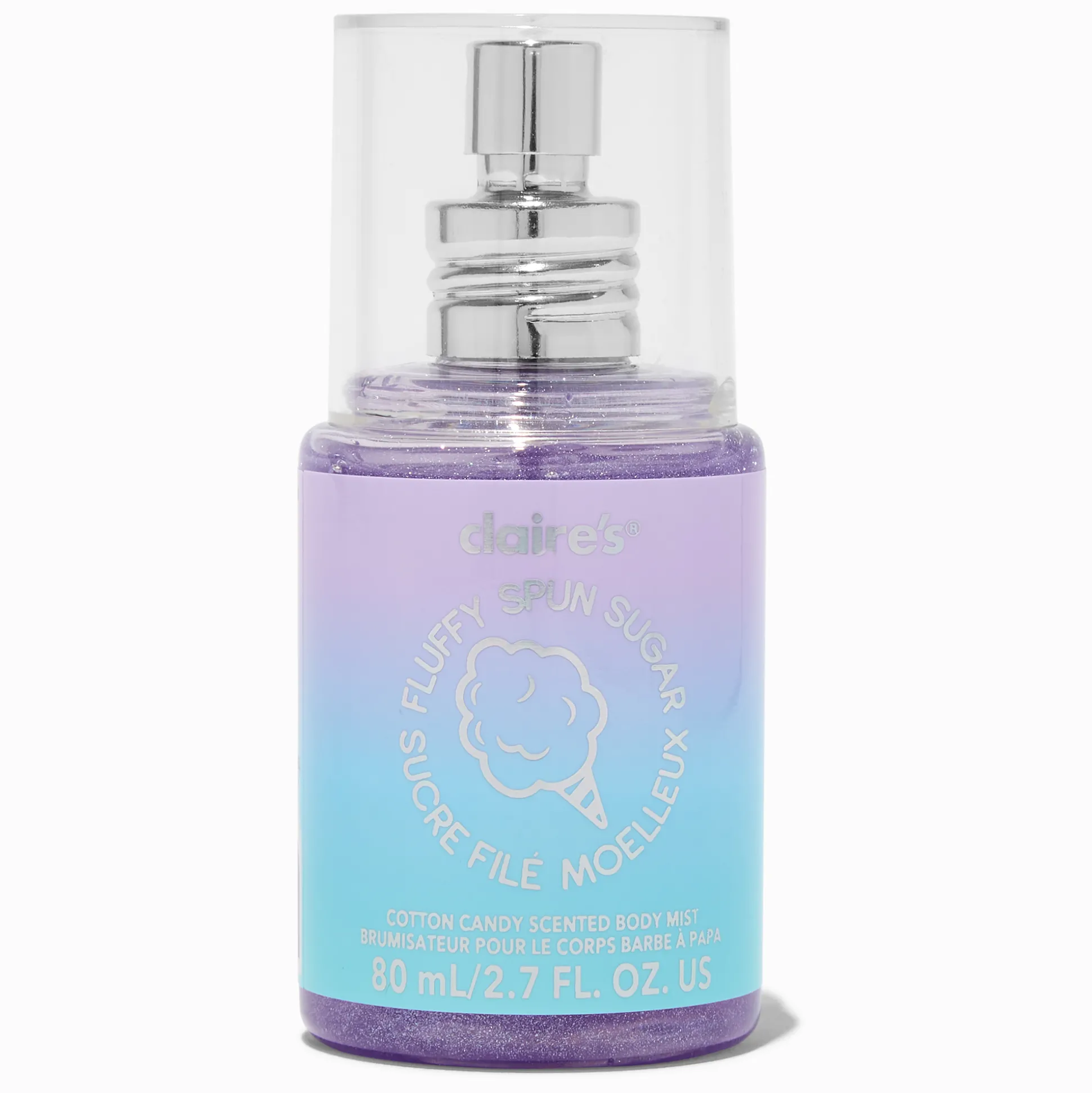 Spritz yourself with summer vibes with this cotton candy-scented body mist. Body spray comes in a decorated container decorated with a sweet cotton candy treat.