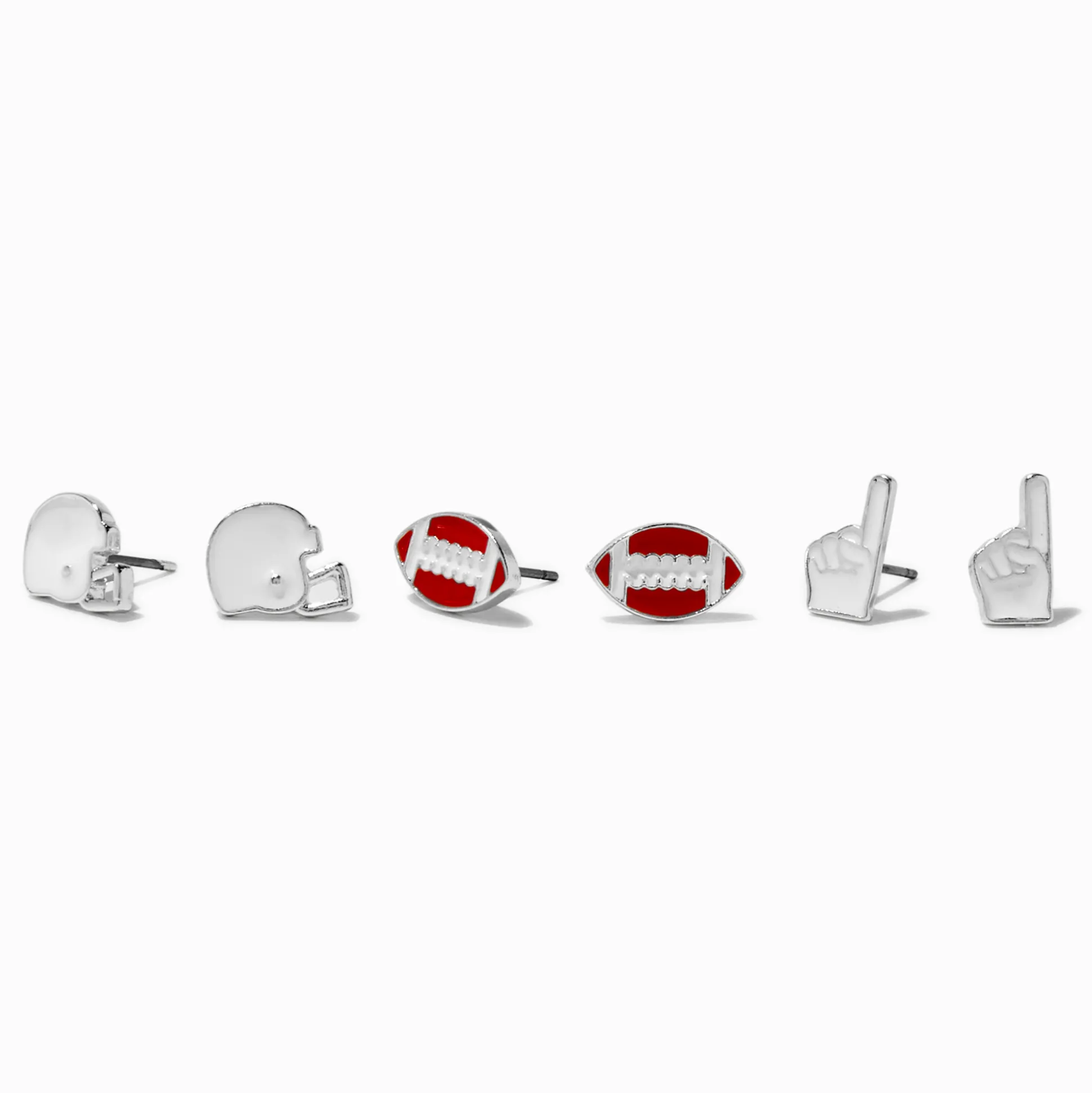 Score a touchdown with this football stud earrings set. The three pairs includes footballs, helmets, and foam fingers, so you always have the perfect pair for the whole season.