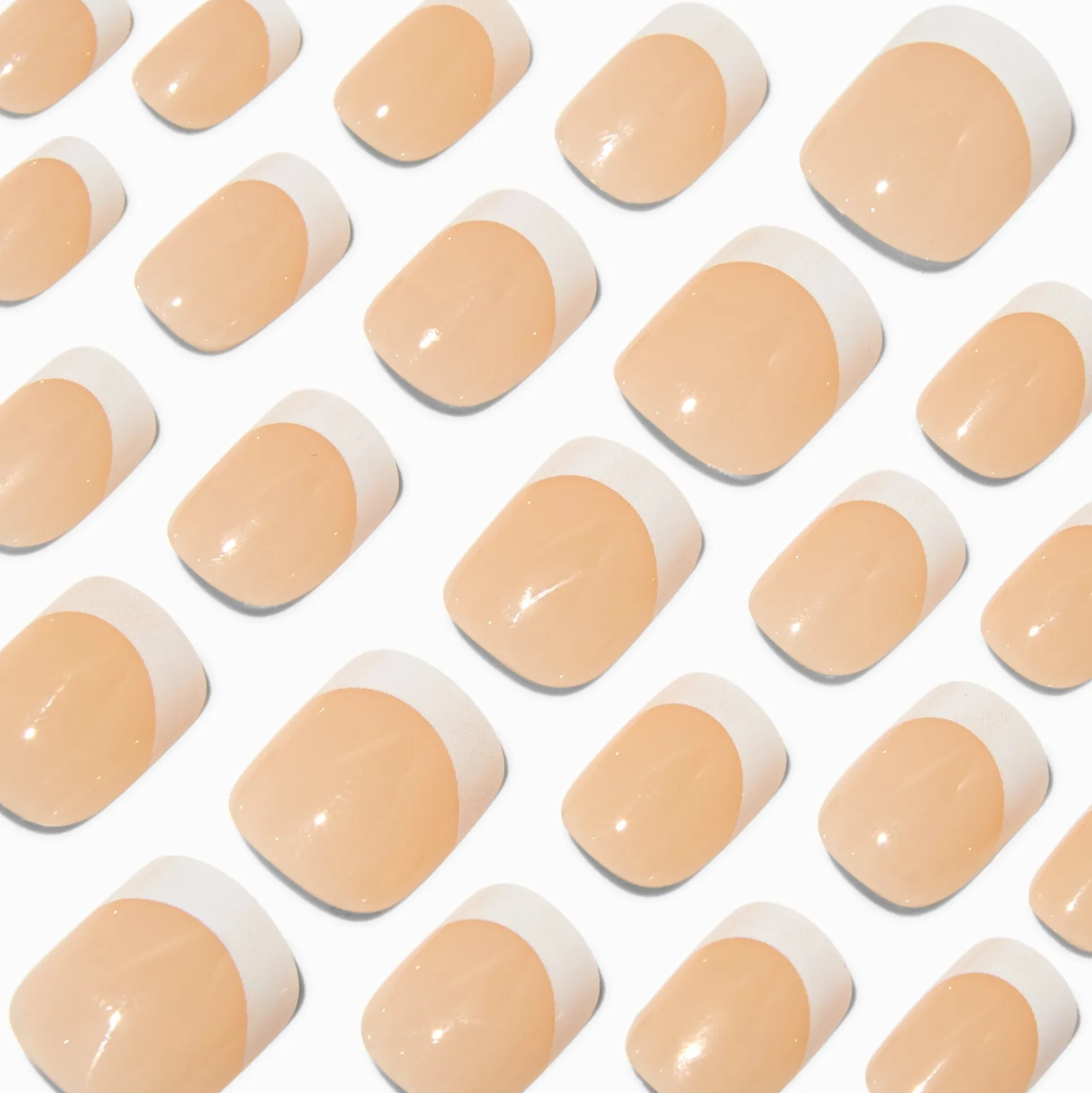 French Tip Short Square Vegan Faux Nail Set - 24 Pack