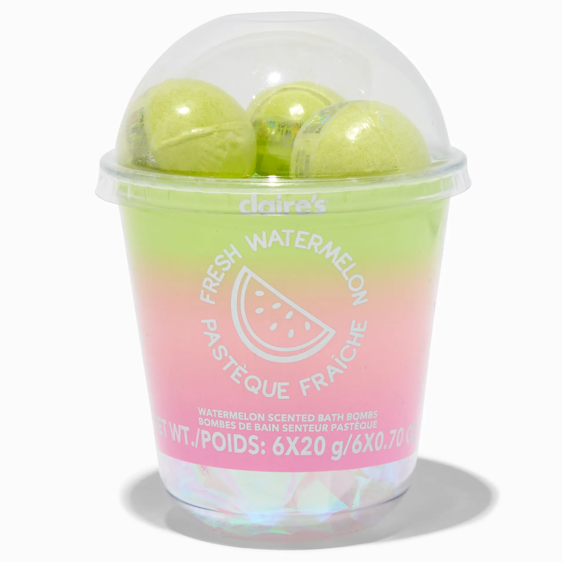 Soak yourself with deliciousness with this watermelon bath bomb set. Scented bath bombs come in an ombre container to keep you smellin’ sweet all day long.