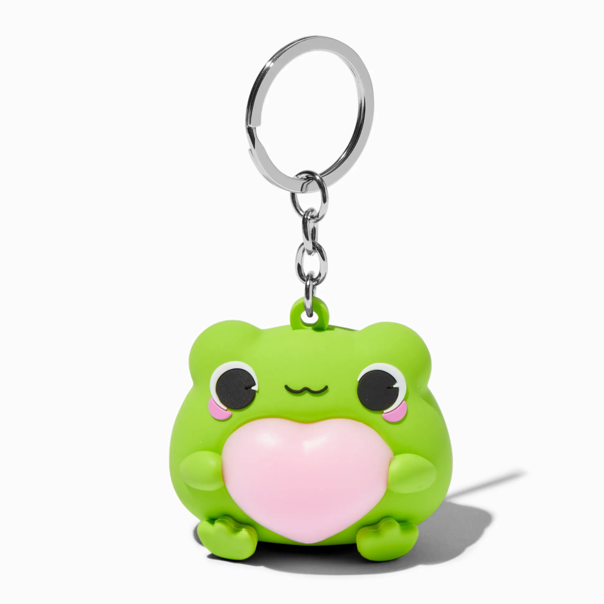 This super adorable keychain is a must-have accessory for any set of keys, backpack, purse, and more! This delightful green frog has a soft center heart that needs your fingers on it.