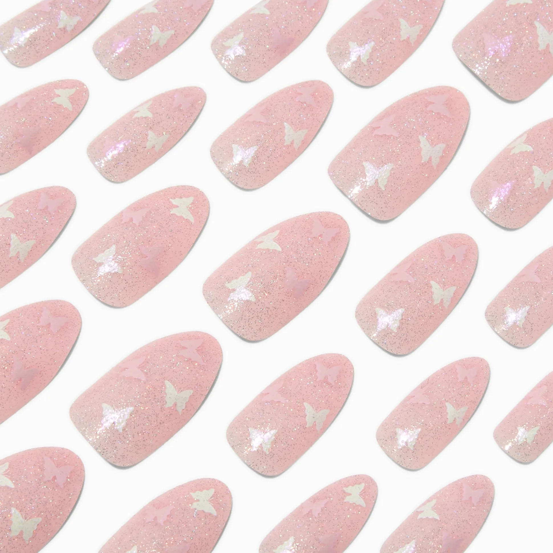With an improved fit and up to a 7-day wear, these vegan faux nails are on-trend faves. They come in 12 different sizes, so finding the perfect shaped nail is a breeze. With a stiletto shape, these faux nails have a glitter finish.