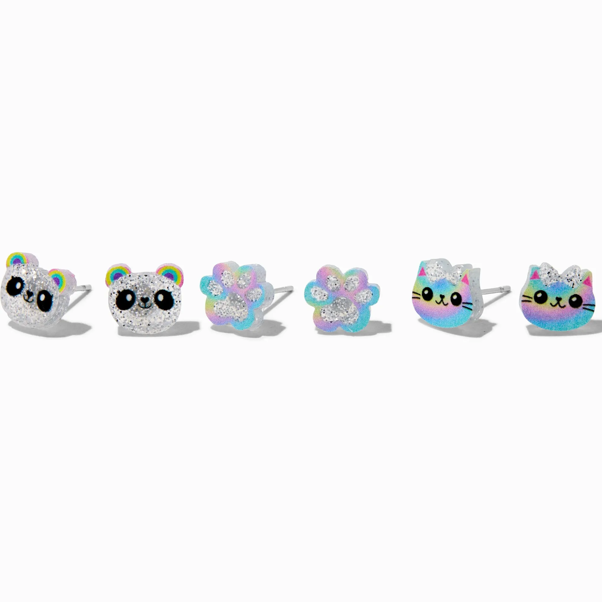 Decorate your ears with some of your fave animals with this three-pack stud set. The glitter acrylic designs come in panda, cat, and paw.