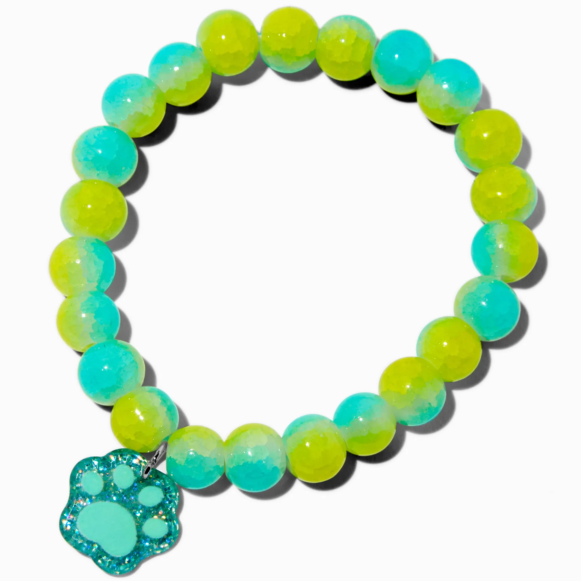 Be the first to review “Glittery Paw Print Charm Beaded Stretch Bracelet” Cancel reply