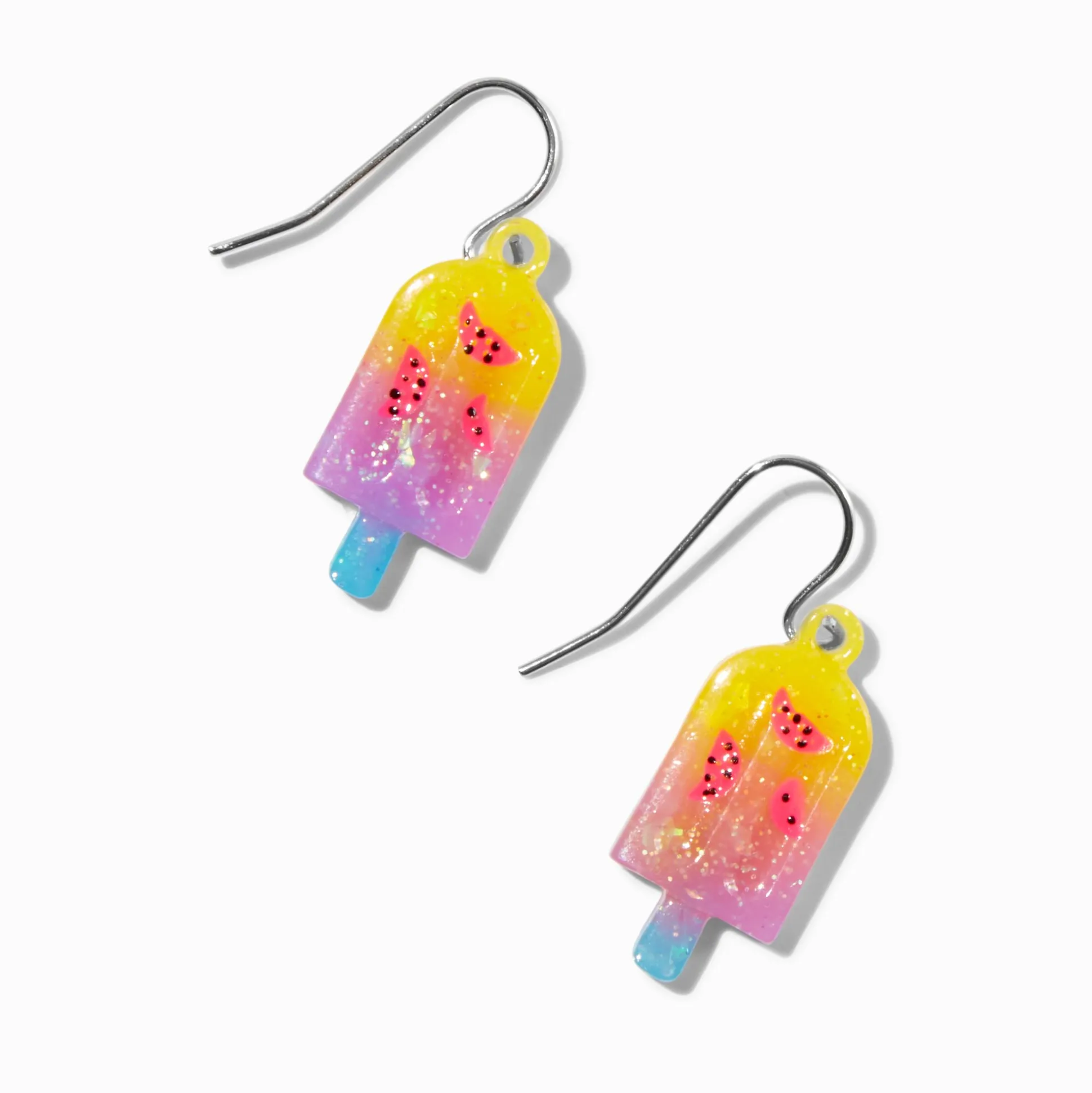 Rock some serious summer vibes in these drop earrings. The watermelon ice pops glow in the dark and are perfect for vacay or any day. For best results, expose glow in the dark charms to light.