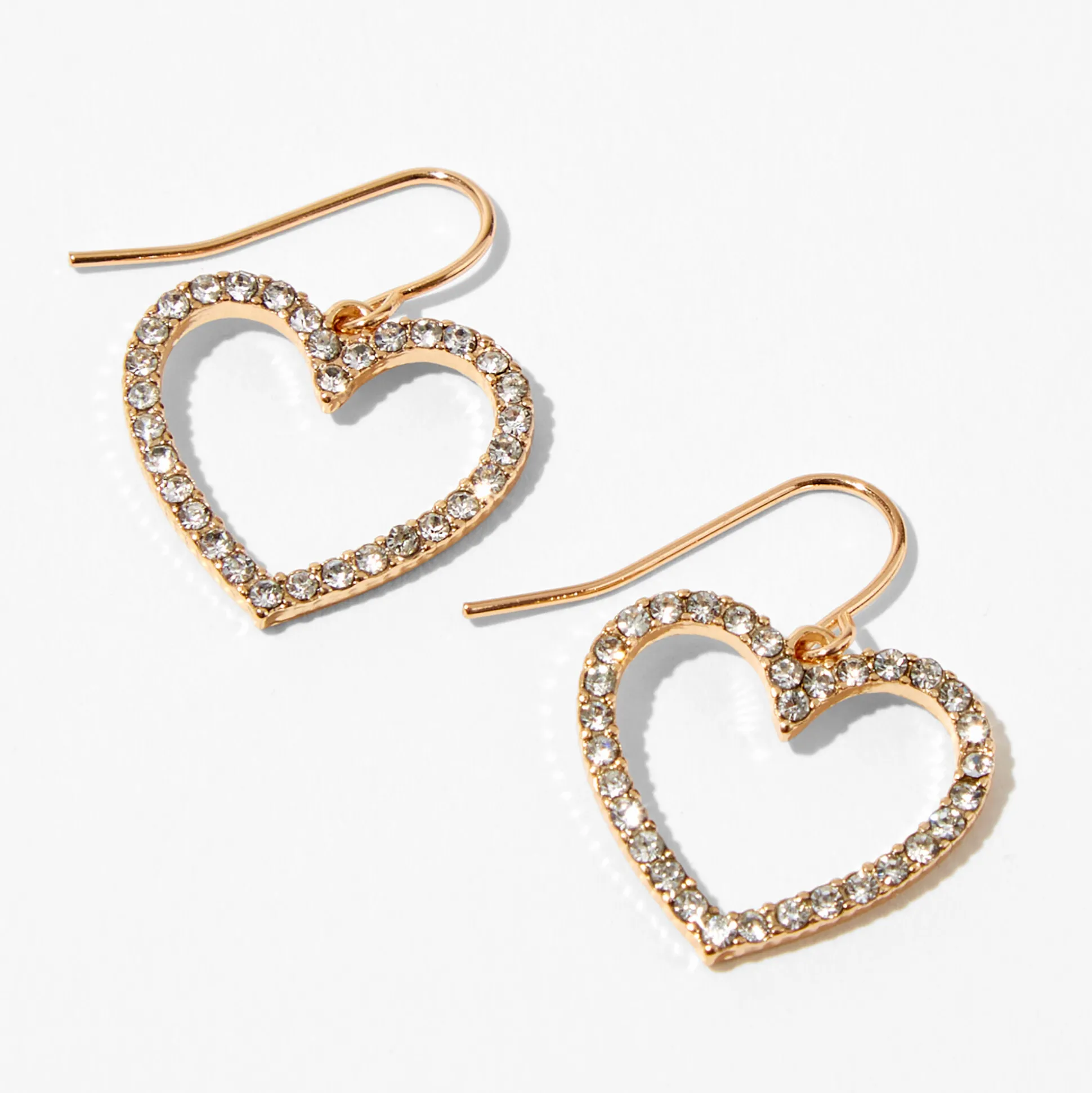 Fall in love with these heart shaped earrings to add a pop of sparkle to all your looks! Embellished with faux crystals on each earring, these will definitely be a favorite go-to pair.