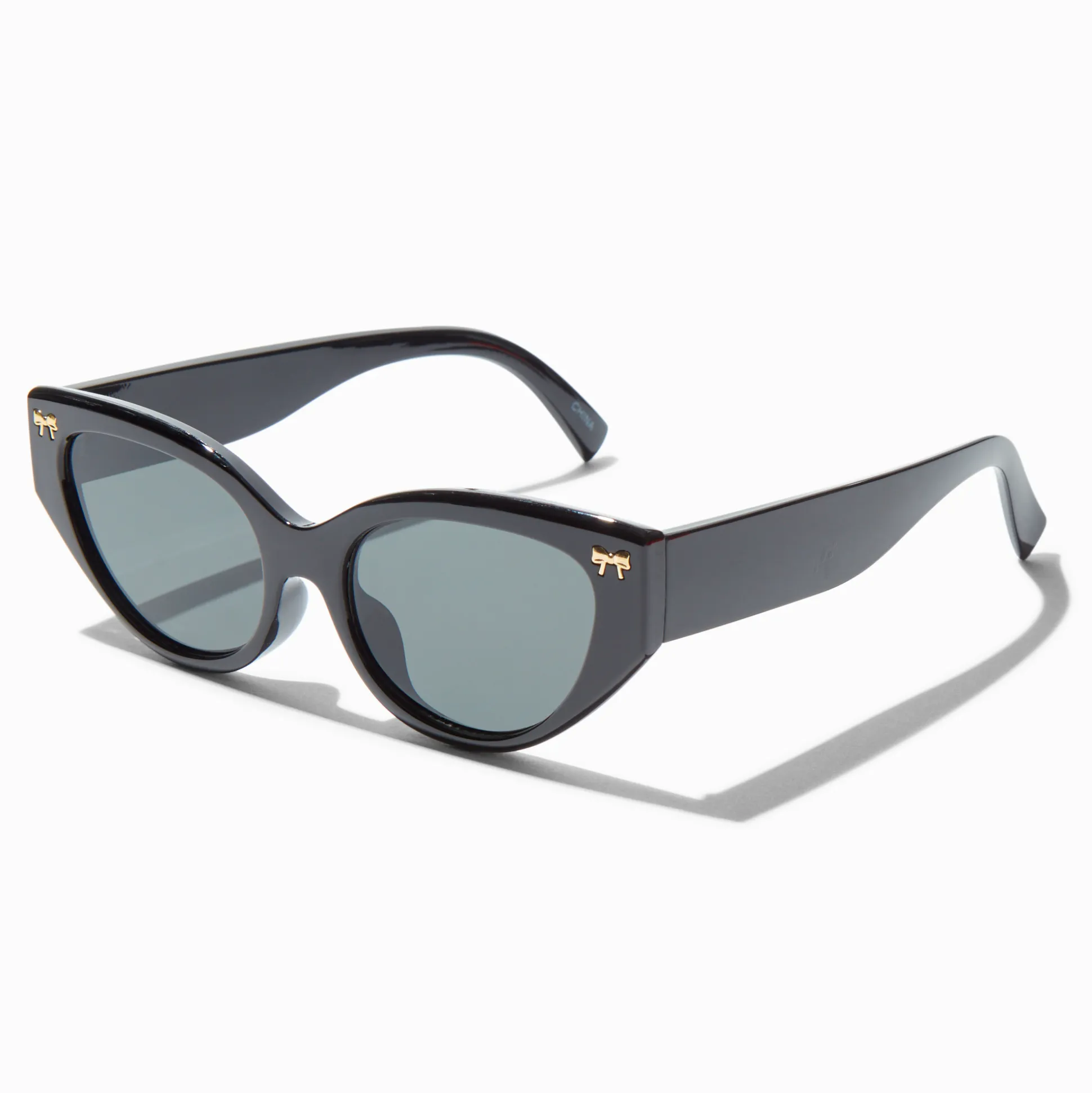 Put some some retro style on in an instant in these slick sunglasses. The black sunglasses have gold-tone bows at the temples. Tuck them into your bag so they’re always handy when you need them.