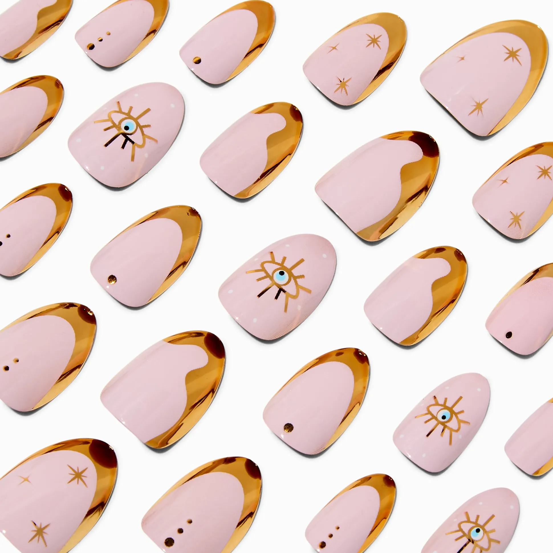 With an improved fit and up to a 7-day wear, these almond vegan faux nails are on-trend faves. They come in 12 different sizes, so finding the perfect size nail is a breeze. With an almond shape, these faux nails have a gold-tone finish and a celestial design.
