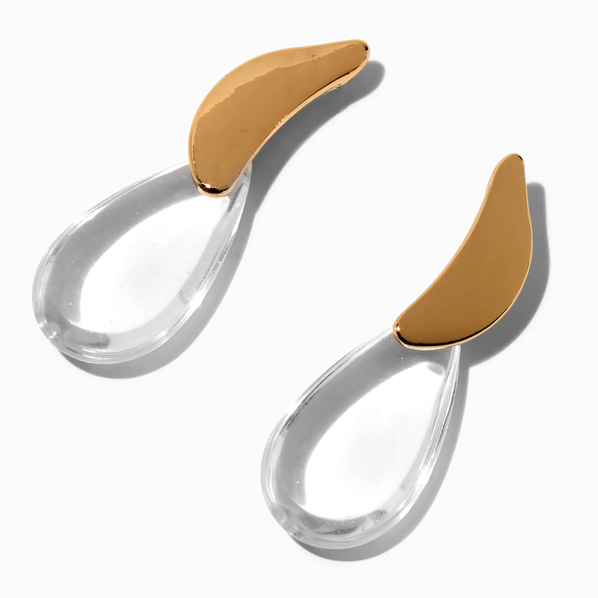 Go clear with these drop earrings. The gold-tone and clear acrylic designs have a teardrop shape.
