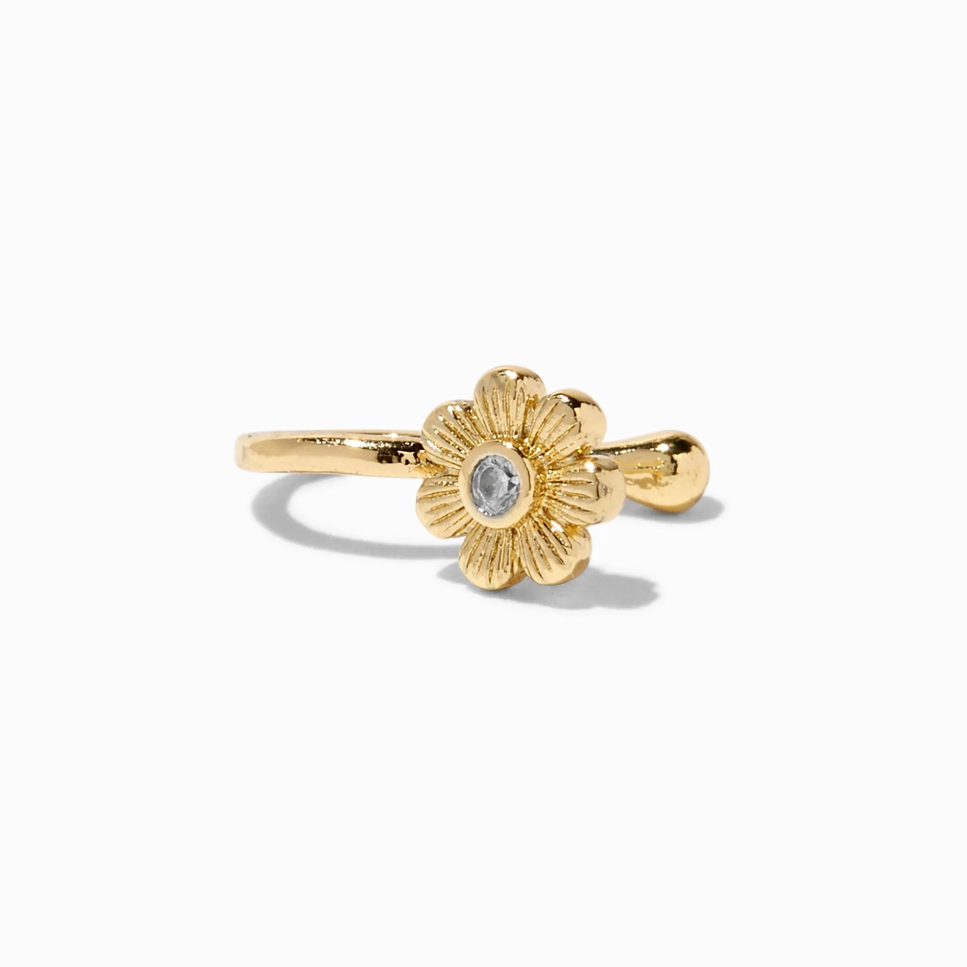 Add a pop of flowers to your nose jewellery with no piercing necessary! Faux nose ring features a sleek gold-tone finish with a faux crystal-embellished flower design.