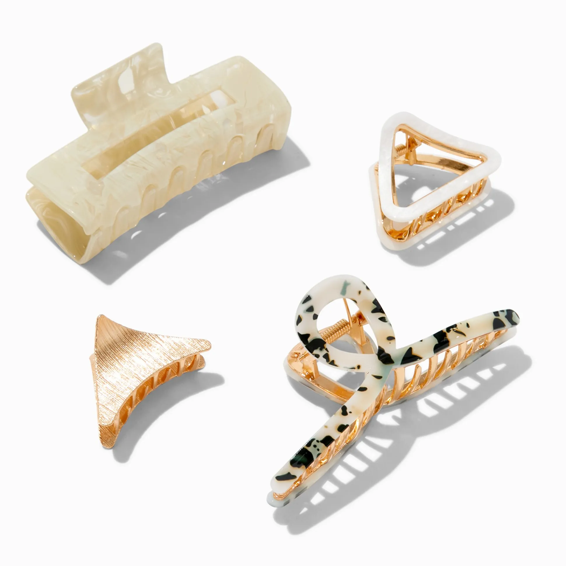 Expand your hair claw arsenal with this four-pack set. Clip these claws throughout your hair for a different look each day. Wear one, wear two, or wear all four together!