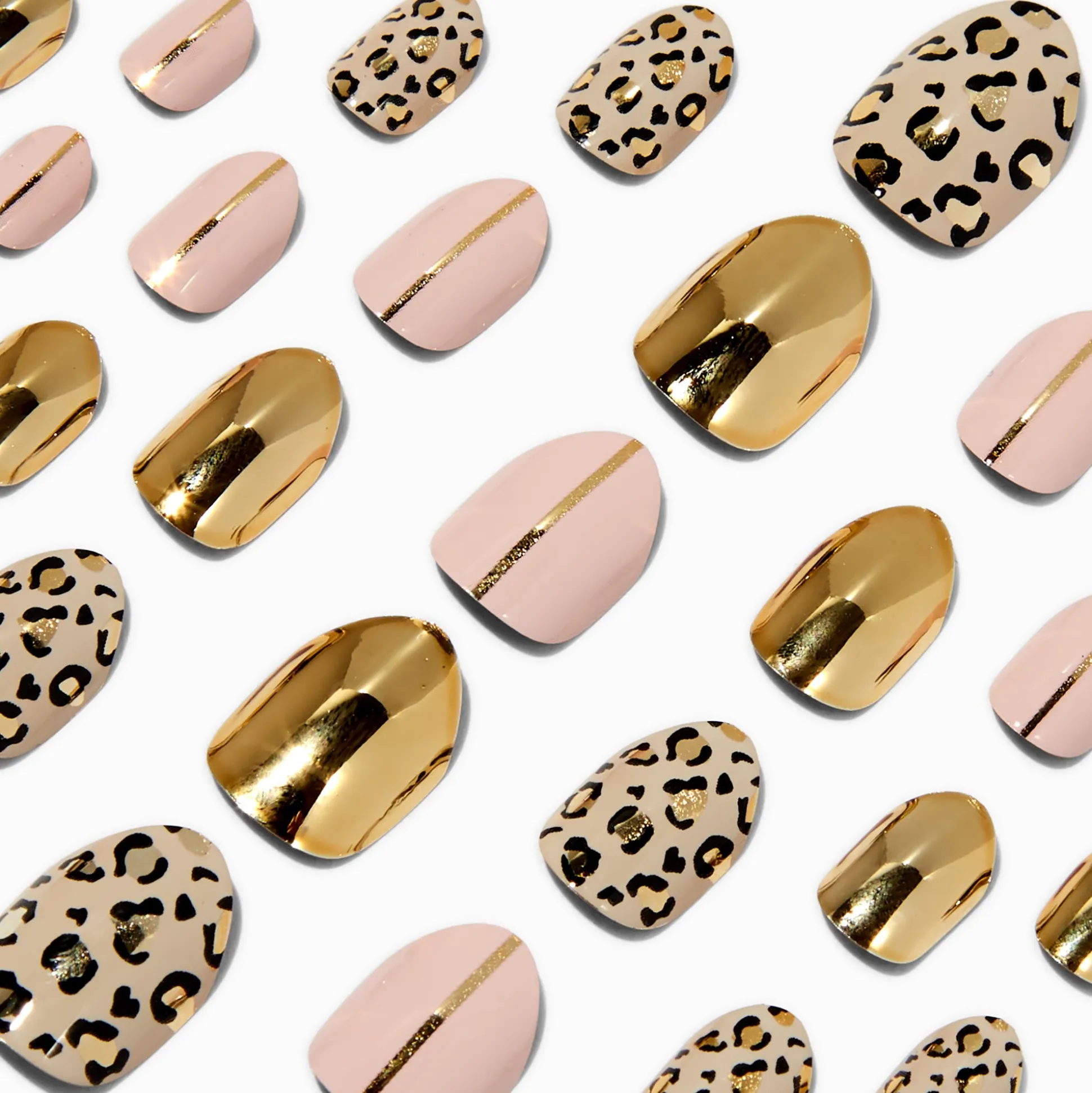 Serious feline vibes will be right at your fingertips with this on-trend set of faux nails. Stiletto-shaped nail set features a leopard design. Vegan nails are easy to apply, just press on and go!