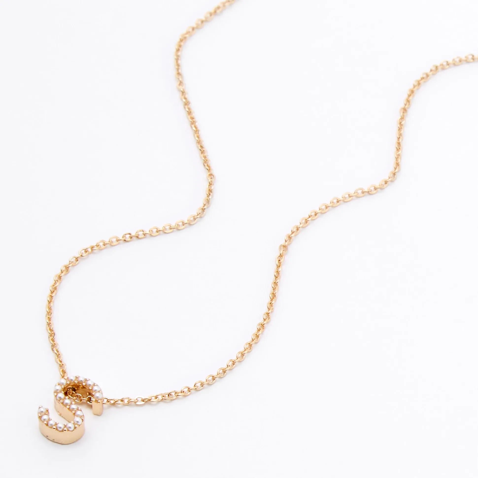 Add a cute and dainty initial pendant necklace to your jewelry collection! This gold-tone chain features an “S” initial charm with mini faux pearl accents.