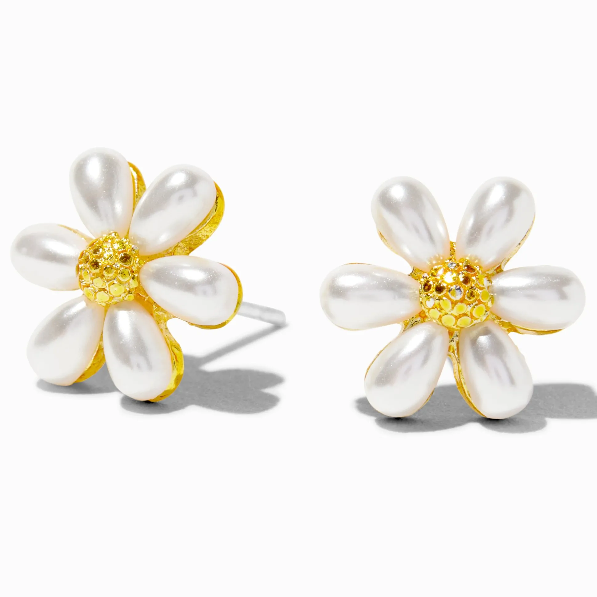 Add classic style to your fave ‘fit with these gold-tone stud earrings. They have faux pearl daisy designs that match perfectly with your flower-forward vibe.