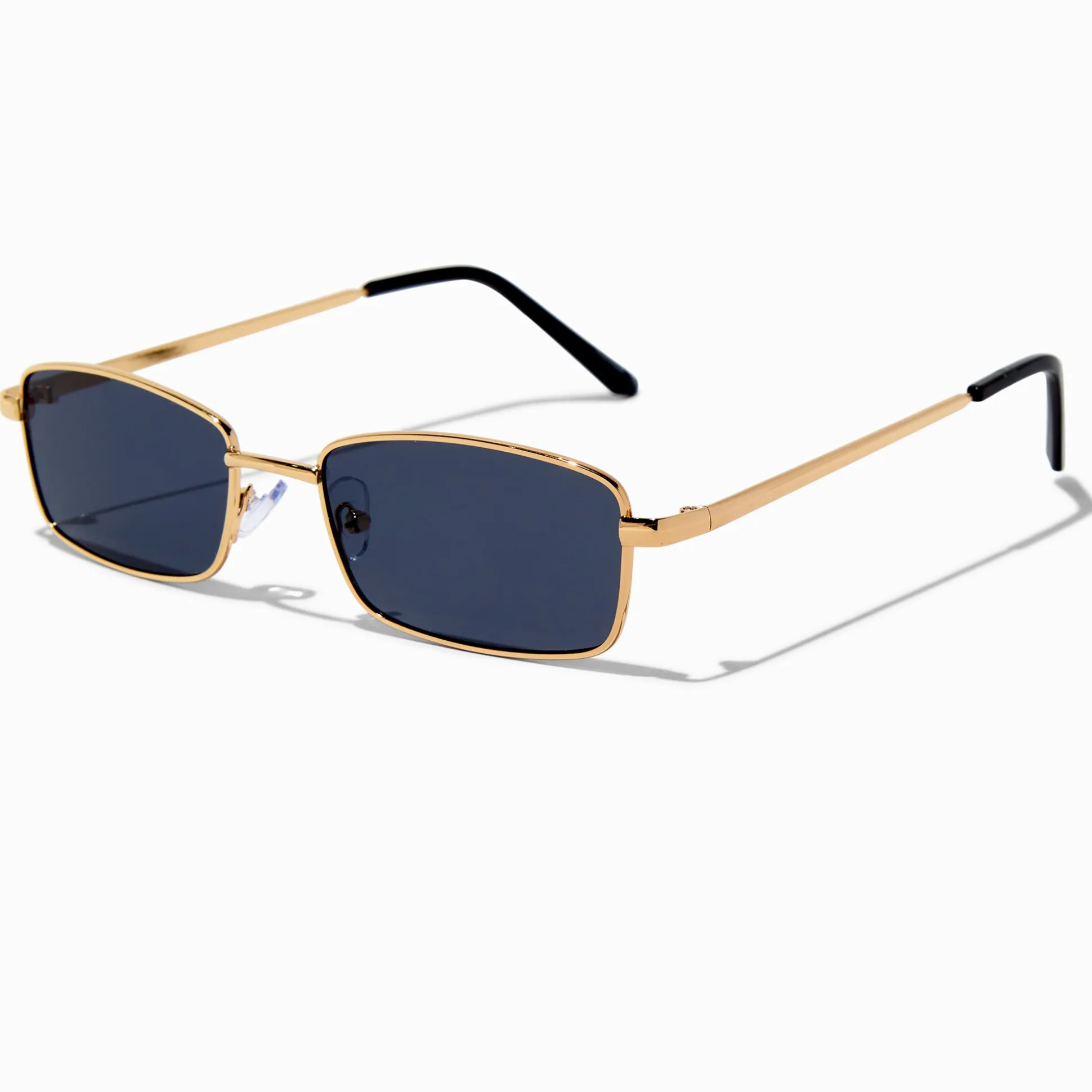 Sunglasses help protect your eyes from the bright rays, and they can also look super-stylish while doing it! This pair has a rectangular shape with a gold-tone metal finish. Tuck them into your bag so they’re always handy!