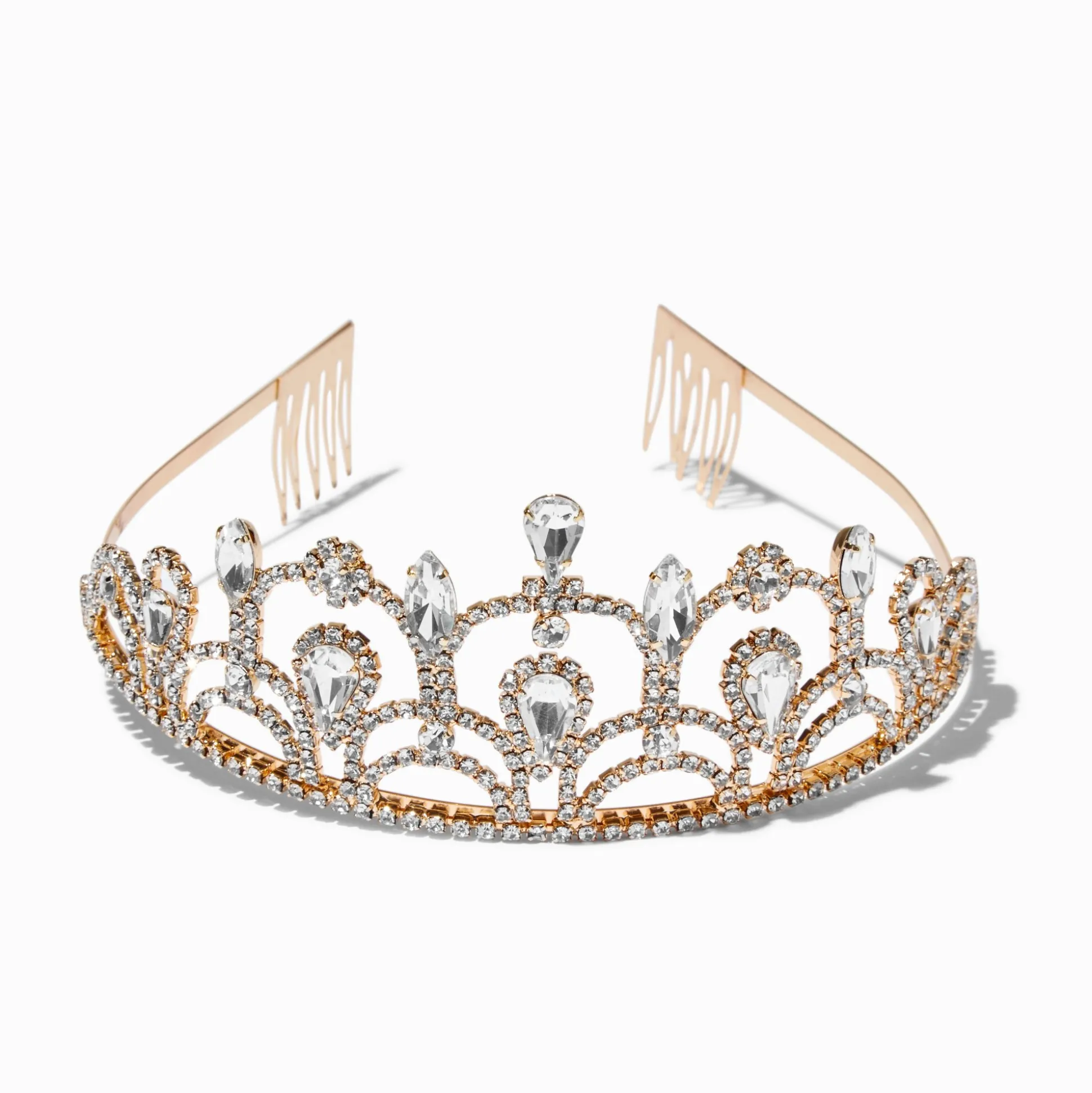 Shine like a princess with this gorgeous rhinestone tiara. It has a a scalloped design and is the perfect finishing touch to your special occasion look.